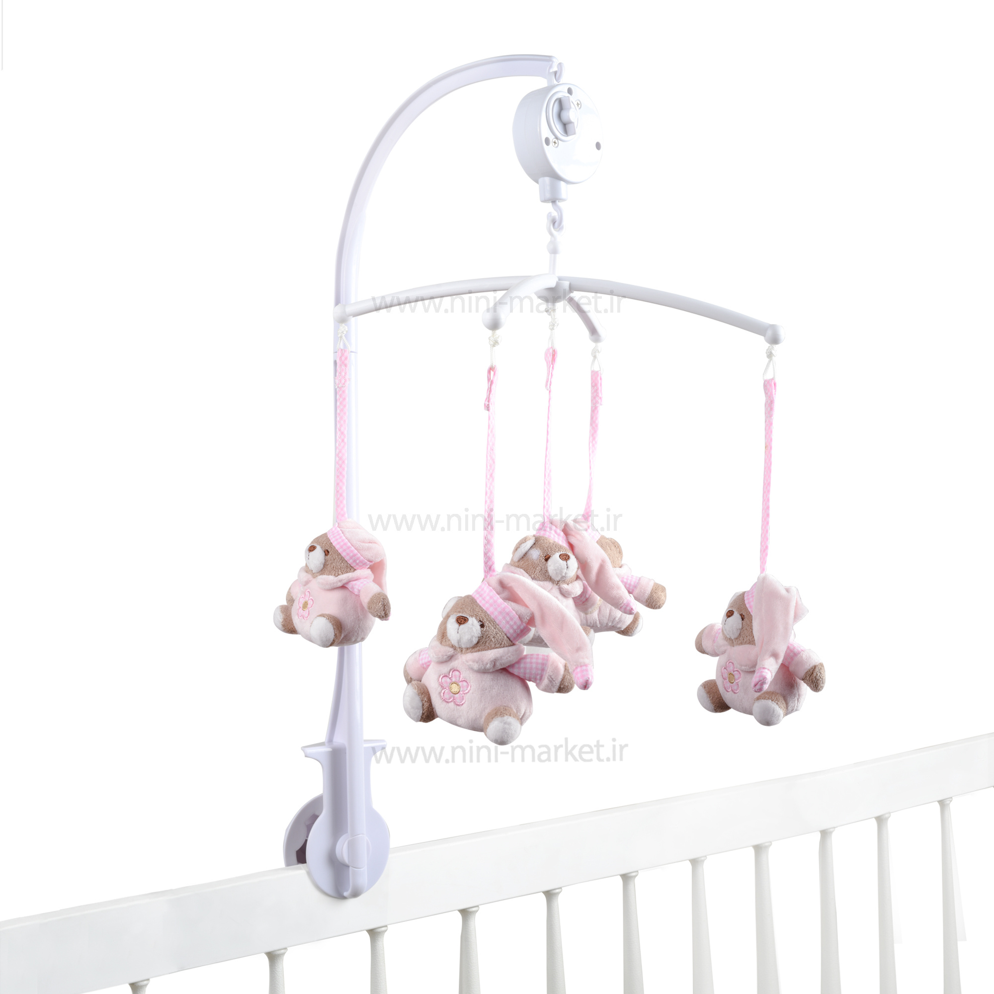 آويز تخت موزيکال خرس رنگ صورتي baby4life