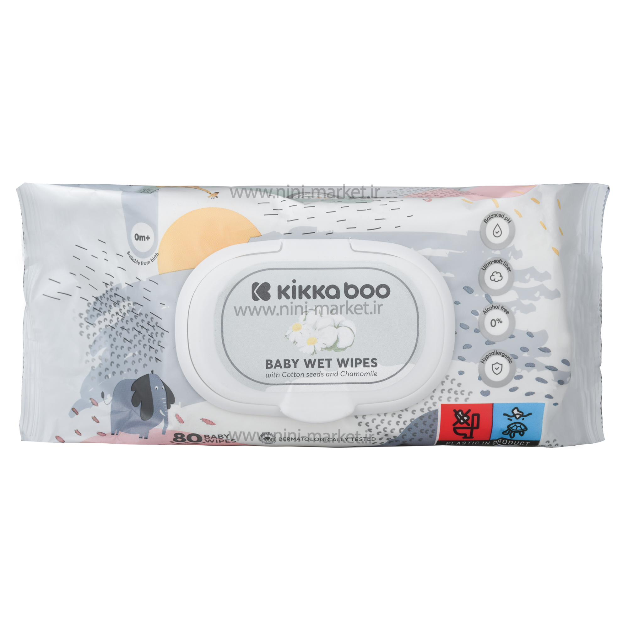 دستمال مرطوب درب دار 80 عددی پنبه کیکابو kikkaboo