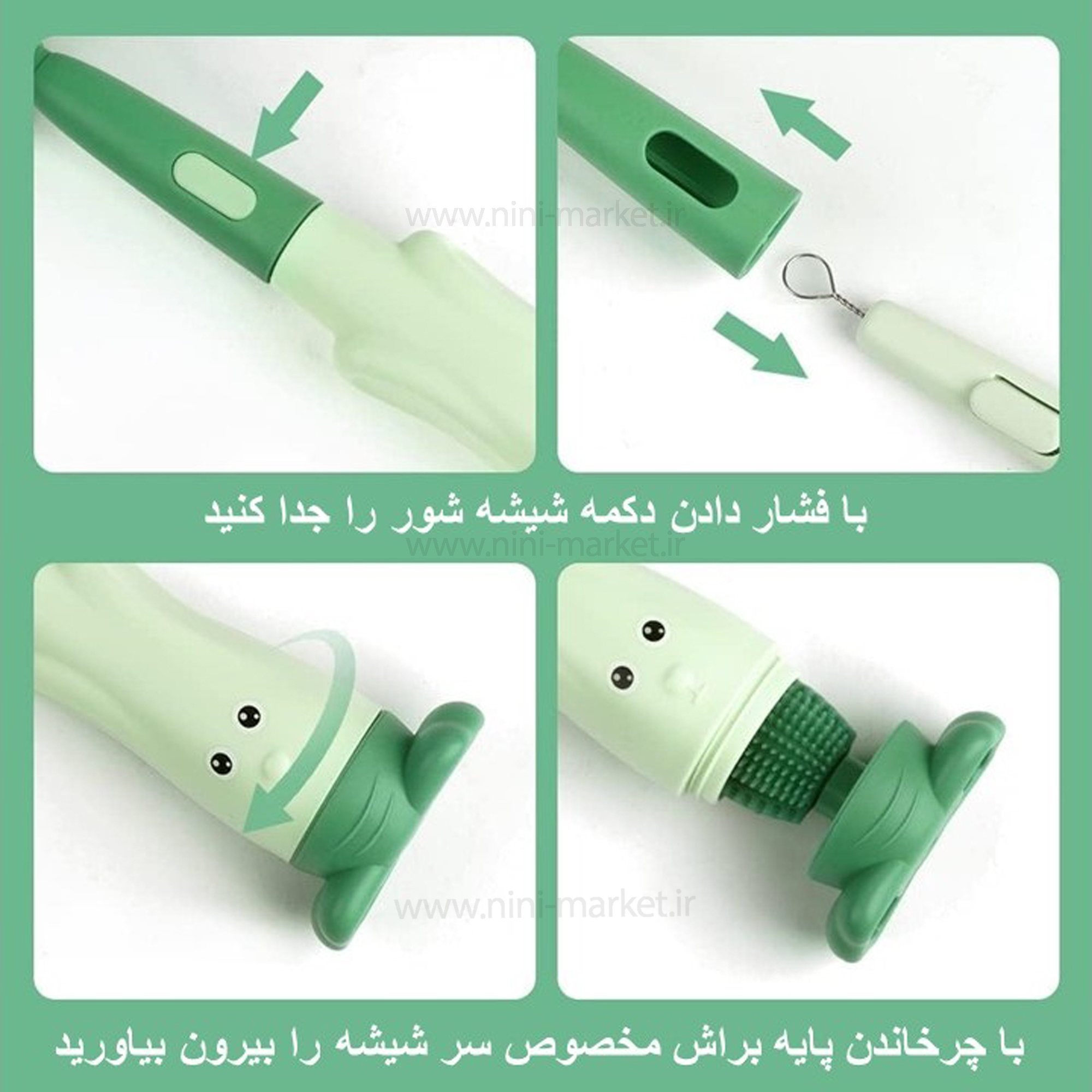 ست شیشهشور ۳ در ۱ عروسکی سیلیکونی سبز چیکو یکی از کاربردیترینها بین انواع شیشهشورها است. این ست با اینکه از سه بخش مجزا تشکیل شده است، اما همه آنها در دسته عروسکی آن جا شده و فضای زیادی اشغال نمیکنند. از یک شیشهشور، سرشیشه شور و یک نی شور تشکیل شده است. این مجموعه ساخته شده از سیلیکون باکیفیت بالا، نرم، بدون بو، بدون BPA، غیرسمی و بسیار بادوام است. جنس سیلیکونی آن باعث میشود که شیشه شیر، با مقدار کمی شوینده بهراحتی و بدون خش افتادن تمیز شود. موهای سیلیکونی بلند و دسته ارگونومیک این ستبرای تمیزکردن انواع شکلهای شیشه شیر مناسب است. ست شیشه شور چیکو با سر برسهای سیلیکونی با اندازههای مختلف، برای تمیزکردن انواع ظروف از جمله نی، لیوان، بطریهای ورزشی، بطری بچه، قمقمه، پمپ سینه، ظروف آشپزخانه و غیره مناسب است.