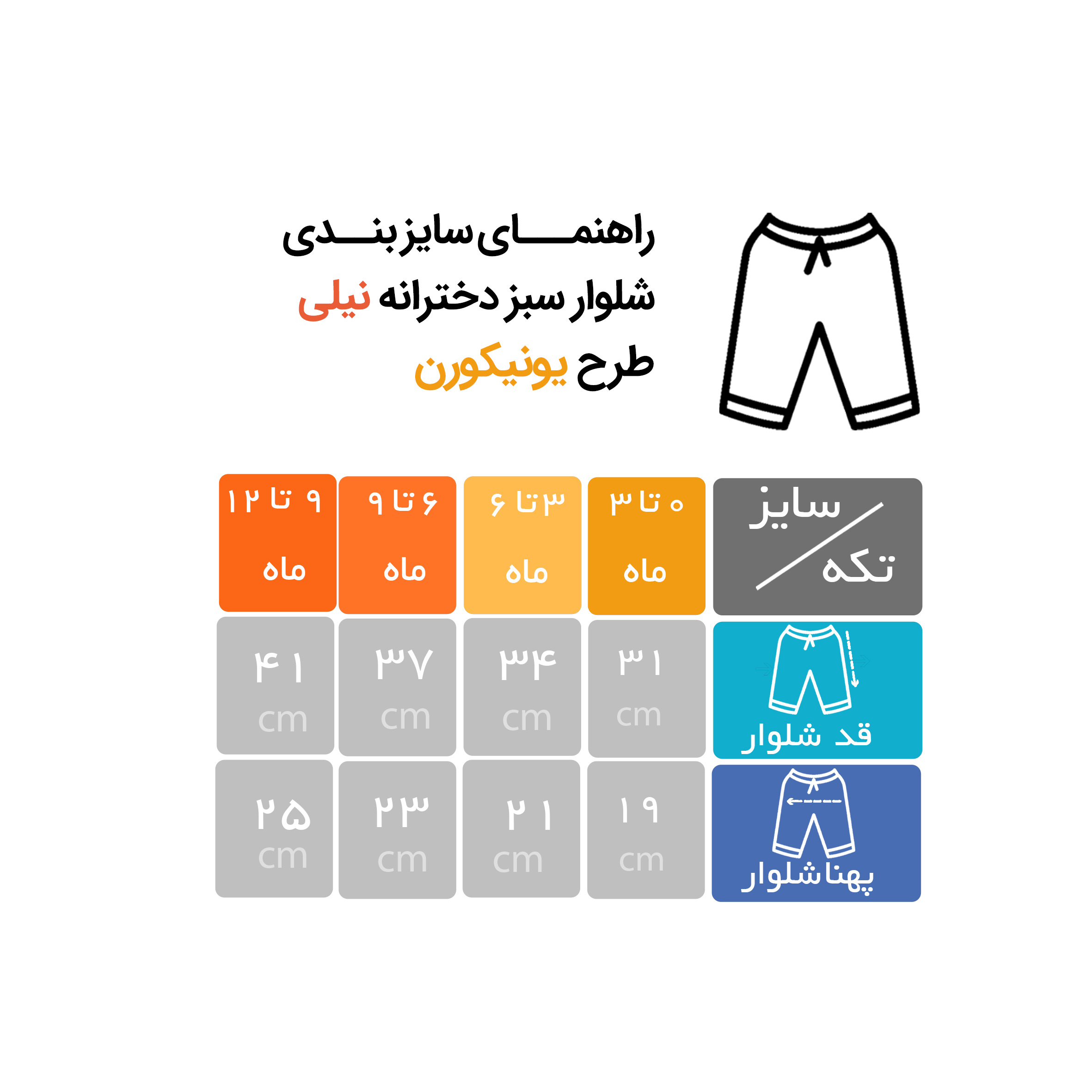 شلوار طرح يونيکورن تمام چاپ رنگ سبز گلدار نيلي Nili