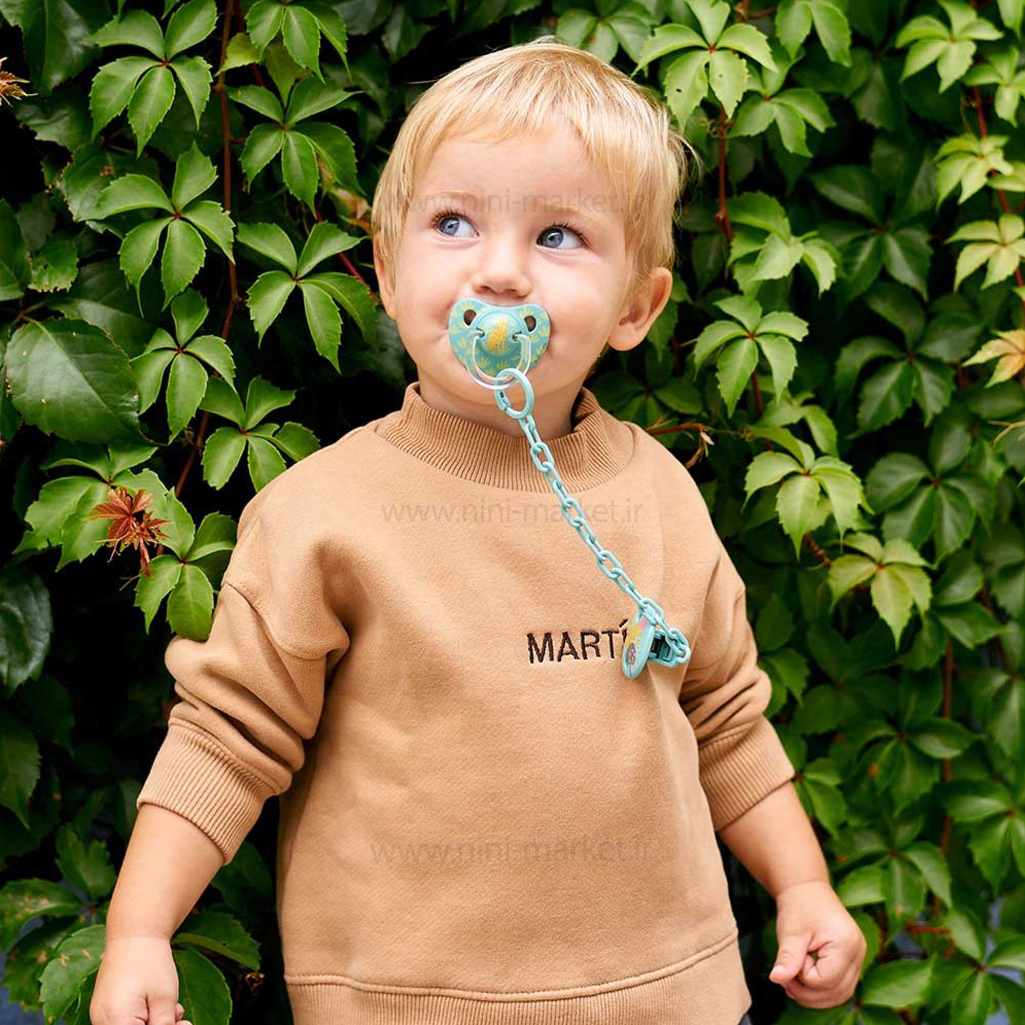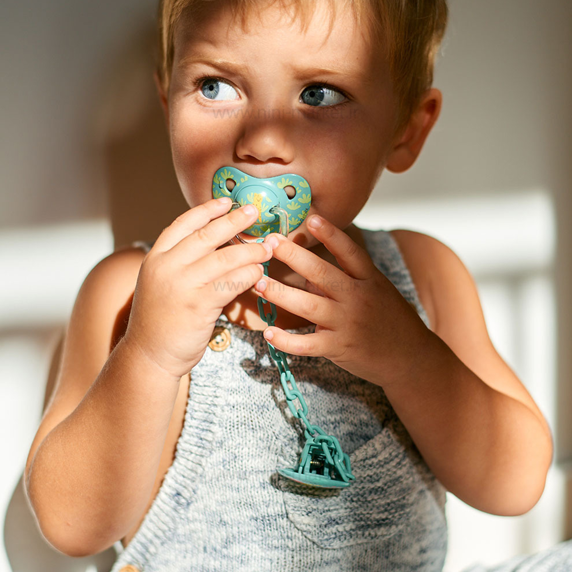 پستانک ارتودونسی طرح پلنگ سبز سواوینکس علاوه بر داشتن رنگبندی و طراحی خاص و جذاب، با طراحی ارتودنتیک باعث میشود که کاملاً متناسب با فک فرزند عزیز شما باشد و تغییر حالتی در لثهها و لبهای نوزاد رخ ندهد. سری پستانک سوانیکس از سیلیکون نرم تولید شده و فاقد بو و طعم است. این سیلیکون کیفیت بالایی دارد و در مقابل گازگرفتن مقاوم است و در طول زمان رنگ و بوی آن عوض نمیشود. سوراخهایی که بر روی بدنه این پستانک وجود دارد از تعریق پوست کودک جلوگیری میکند و باعث میشود پوست دور دهان خشک بماند. دسته پستانک به صورتی طراحی شده است که کودک میتواند آن را بهآسانی بگیرد. استفاده از پستانک در شرایط استرسزا میتواند باعث آرامش بیشتر کودک شود. رنگهای استفاده شده برای تزیین محصولات سواوینکس طبیعی و غیرسمی است. همه محصولات فاقد BPA، آزمایش بالینی و تولید شده توسط یک سازنده داروسازی اسپانیایی هستند.