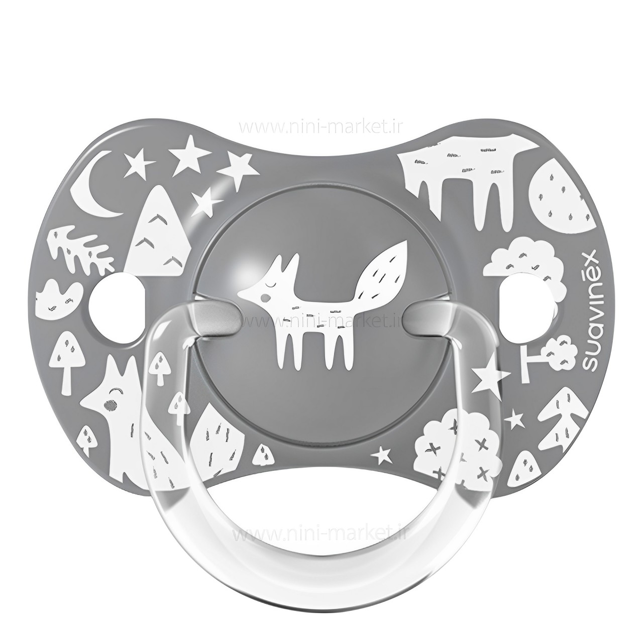 پستانک تکی بادامی 18 ماه به بالا طرح روباه طوسی تیره سواوینکس Suavinex (بدون جعبه)