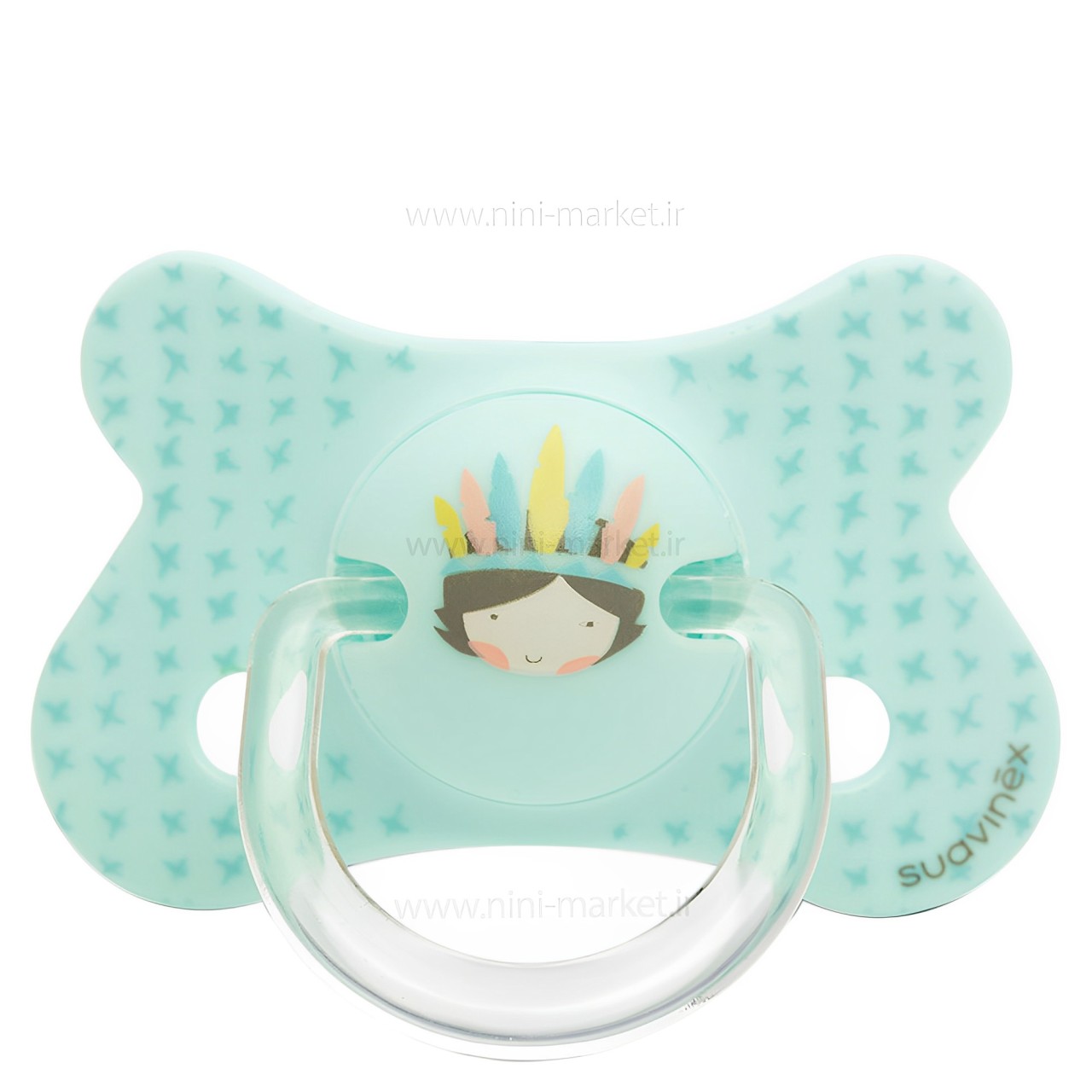 پستانک 4 - 18 ماه بالا ارتودنسي طرح سرخپوست آبی سواوینکس Suavinex