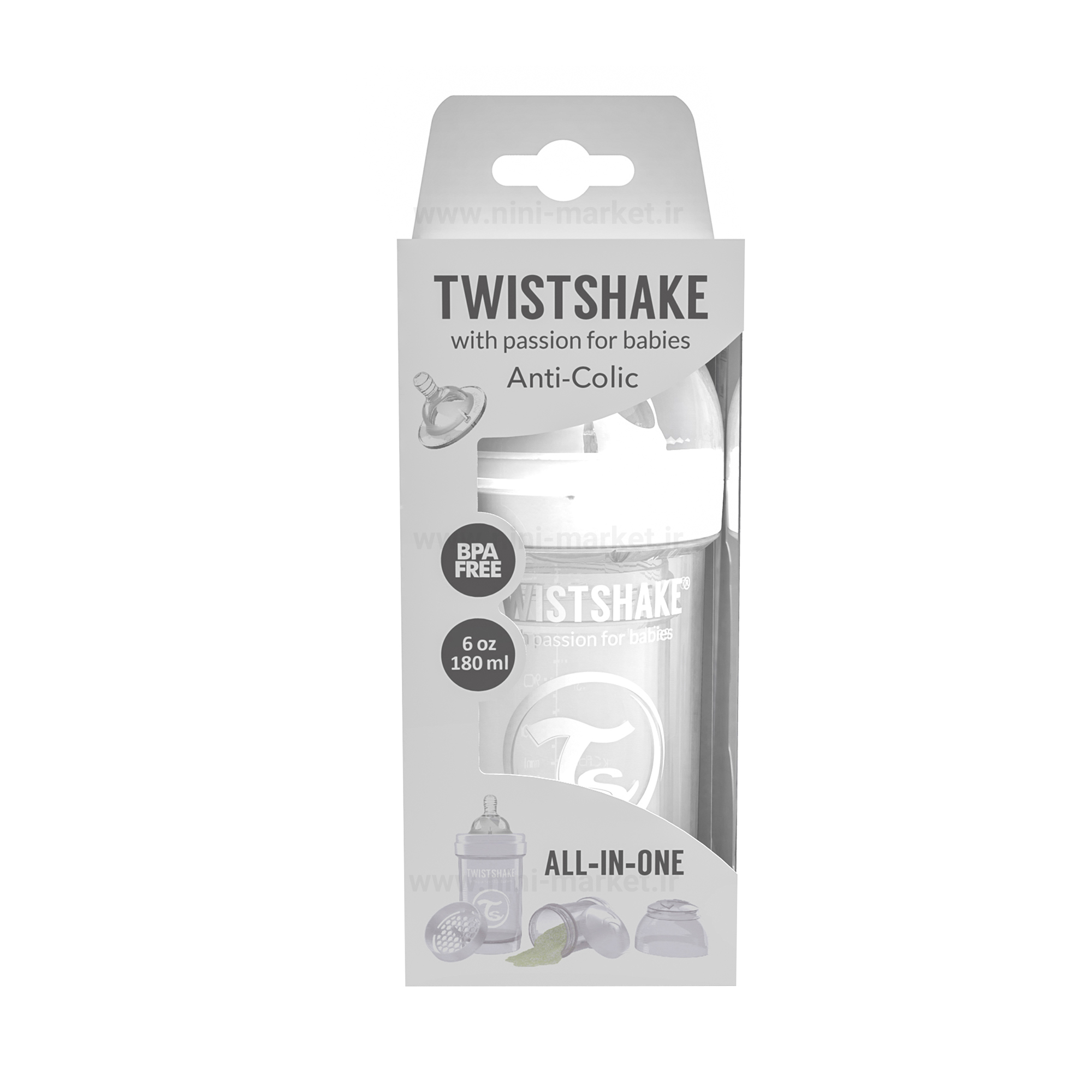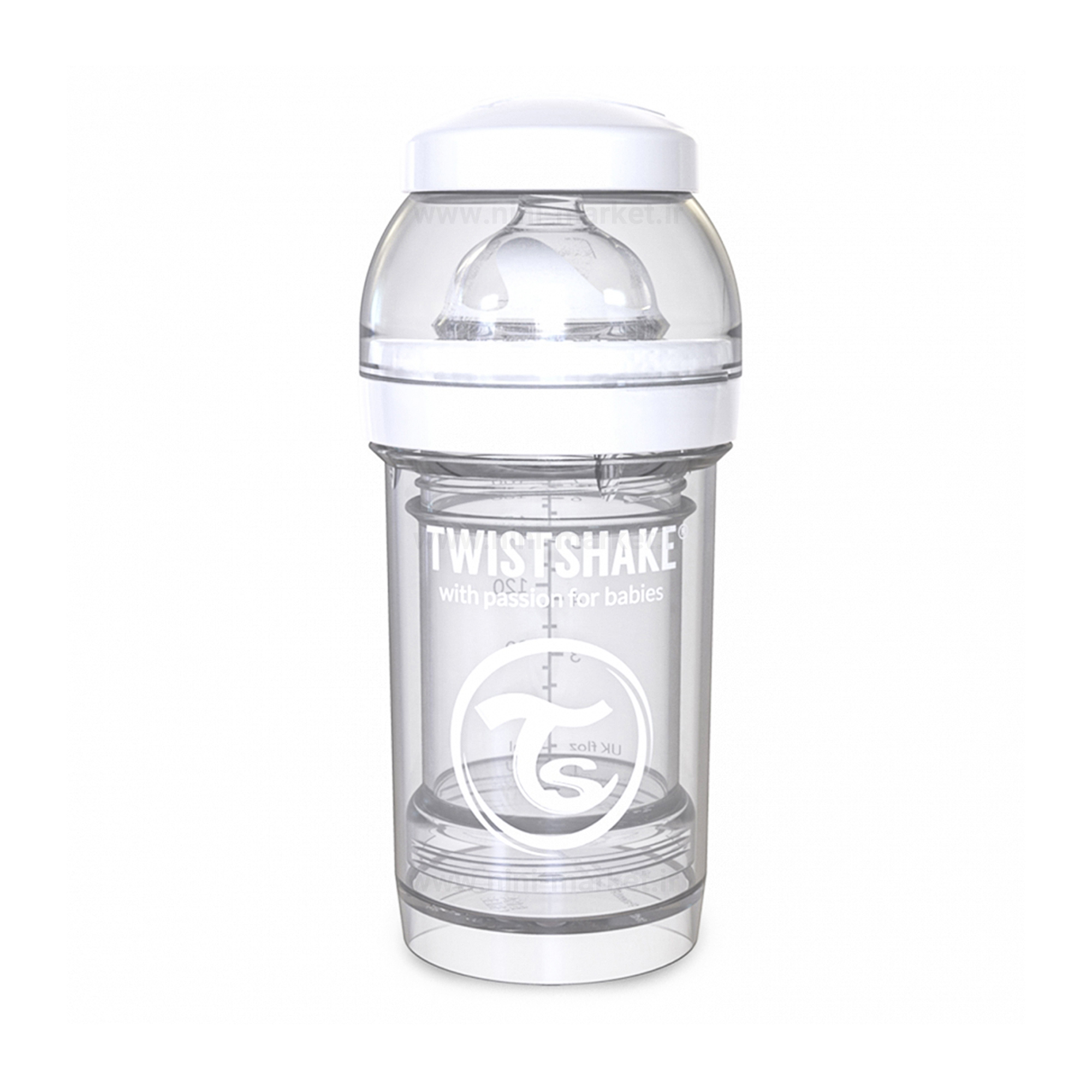 شیشه شیر آنتی کولیک 180 میل سفید تویست شیک Twistshake