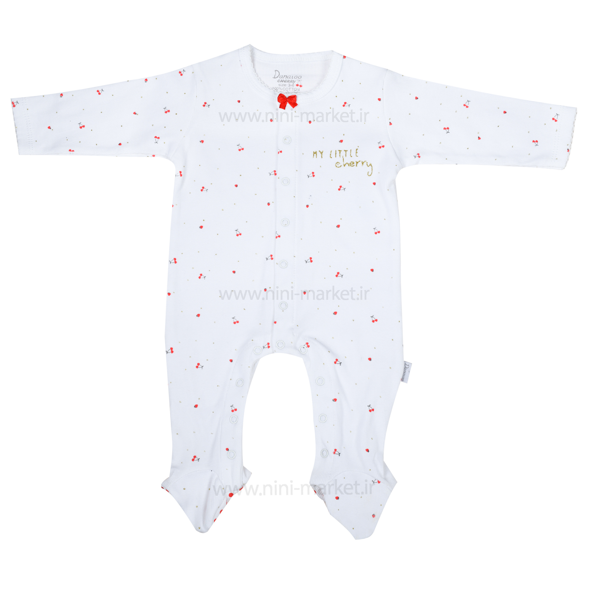 این مجموعه از برند دانالو دارای لباس های چند تکه می باشد که جنس آن ها از سوپر نخ بوده و در دوختن این لباس ها از الیاف های طبیعی، رنگ ثابت و بسیار مرغوب استفاده شده است. سرهمی جورابدار طرح گیلاس برند دانالو با یک متن اکلیلی انگلیسی که به معنای "گیلاس کوچولوی من" میباشد روی آن نوشته شده است، همچنین یک پاپیون قرمز رنگ روی یقه ی مدل فرشته ای آن قرار دارد. قسمت پایین سرهمی چند دکمه فشاری برای بازوبسته کردن راحت تر تعبیه شده است. نوزادان دارای پوست بسیار لطیفی بوده که جنس این لباس ها برای آن ها بسیار مناسب می باشد. جنس پارچه لباس 100 درصد نخ پنبه بوده و اگر کودک شما عرق کند هیچ آسیبی به پوست لطیف آن نخواهد زد. این لباس ها در هنگام شستشو هیچ آبرفتی ندارند. جنس لباس ها بسیار نرم و لطیف می باشد و به هیچ وجه دچار حساسیت نخواهد شد