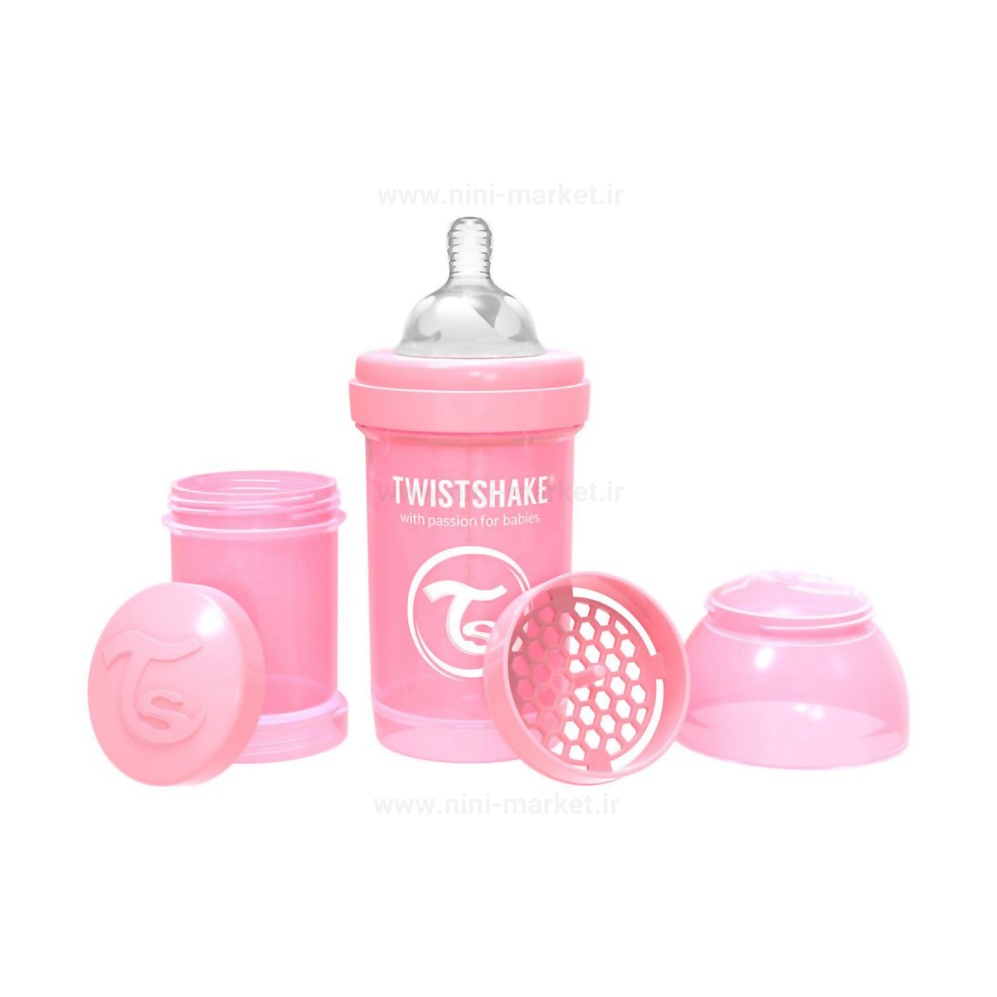 شیشه شیر آنتی کولیک 180 میل صورتی صدفی تویست شیک Twistshake