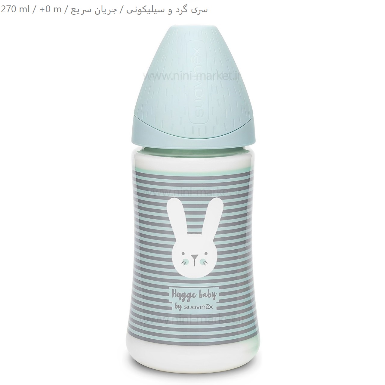 2. شیشه شیر 270 میلیلیتر مناسب برای از بدو تولد به بعد. سری این شیشه شیر گرد و سیلیکونی است و قابلیت تنظیم جریان 3 درجه ای دارد. درجه یک – جریان آهسته مناسب برای شیر . درجه 2 – جریان متوسط مناسب برای مایعات رقیق. درجه 3 – جریان سریع مناسب برای مایعات غلیظ و نوزادان با اشتهای بالا. برای تنظیم درجه، درجه مورد نظر باید زیر بینی کودک تنظیم شود. این شیشهشیر دارای سیستم آنتی کولیک و ضد نفخ است.