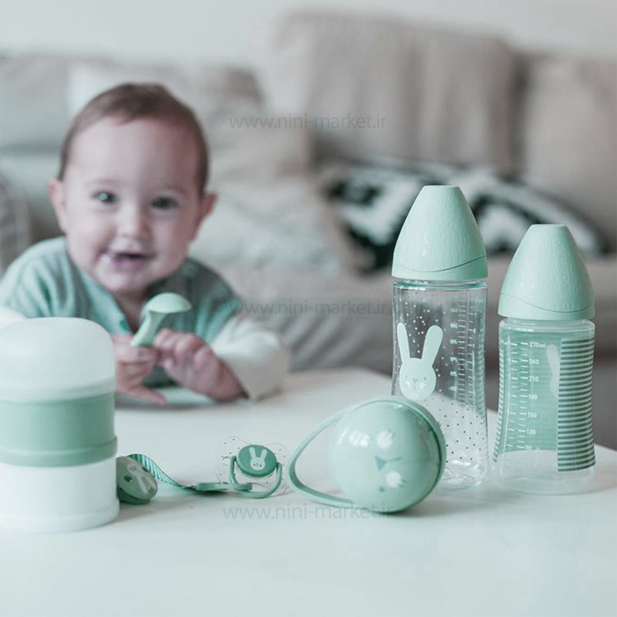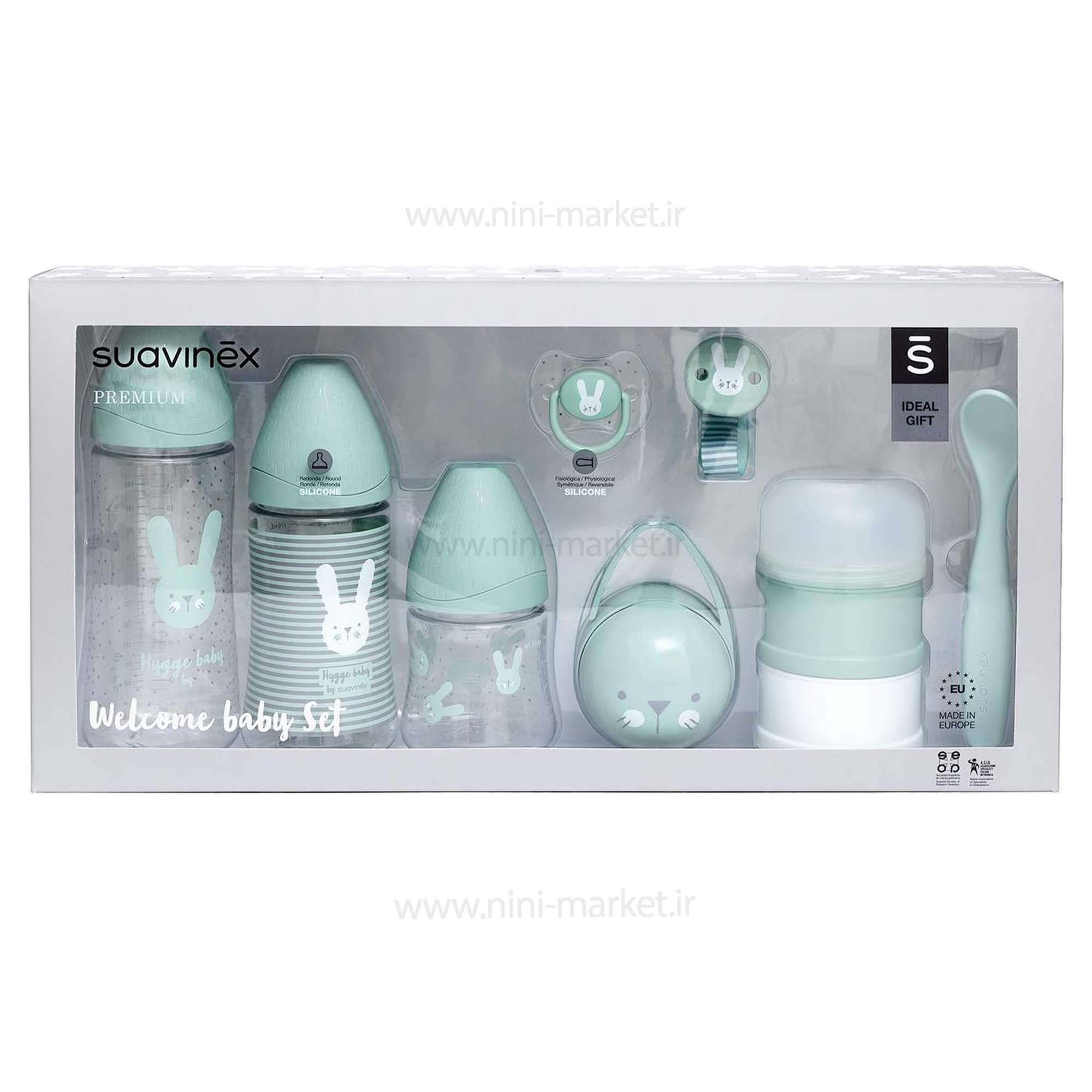 SUAVINEX starter Set for Newborn Baby, green rabbit design
