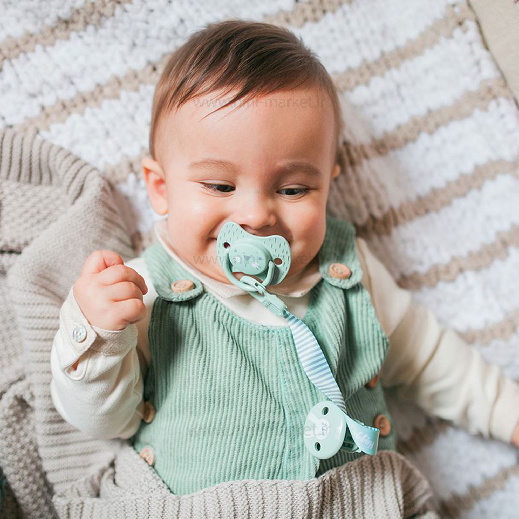 4. پستانک بادامی سیلیکونی مناسب برای 0 تا 6 ماهگی. به دلایل بهداشتی توصیه میشود که پستانک کودکان را بین ۴ تا ۶ هفته یکبار عوض کنید. همیشه قبل از استفاده پستانک را بهدقت بررسی کنید. بهخصوص زمانی که کودک دندان دارد، پستانک را در تمام جهات بکشید تا مطمئن شوید آسیبندیده و سالم است. این پستانک دارای سوراخ هایی روی بدنه اش است که از تعریق و ایجاد حساسیت روی پوست نوزاد جلوگیری میکند. همچنین فاقد لبه های تیز و برنده است.