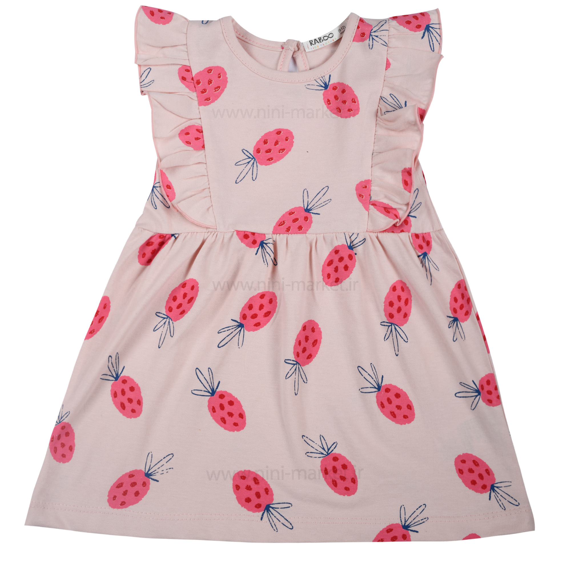 پیراهن دخترانه طرح آناناس رنگ صورتی رابو Raboo