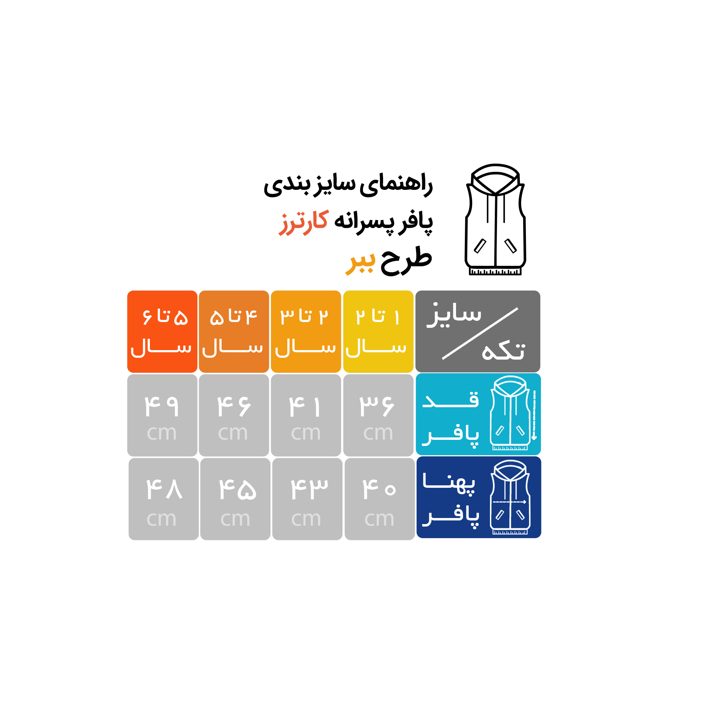 پافر اسپرت طرح ساده رنگ سبز مناسب برای پاییز و زمستان. جنس این پافر شمعی است که علاوه بر زیبایی و گرم بودن آن خاصیت ضد آبی نیز دارد؛ و در زمان باران خیس نمیشود. بخش پشمی یقه (که میتوان آنرا جدا کرد) گردن کودک را در سرما، گرم نگه میدارد.