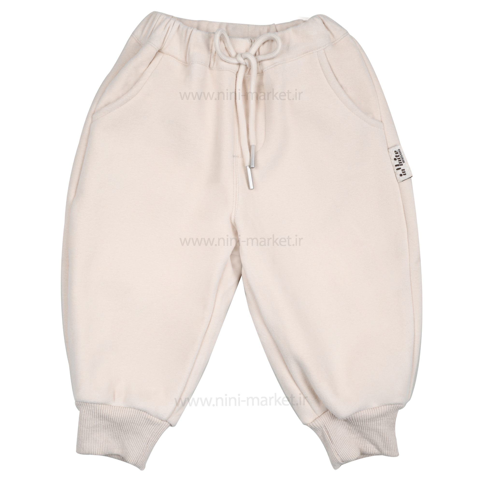 شلوار اسلش مخملی داخل کرک طرح ساده رنگ کرم