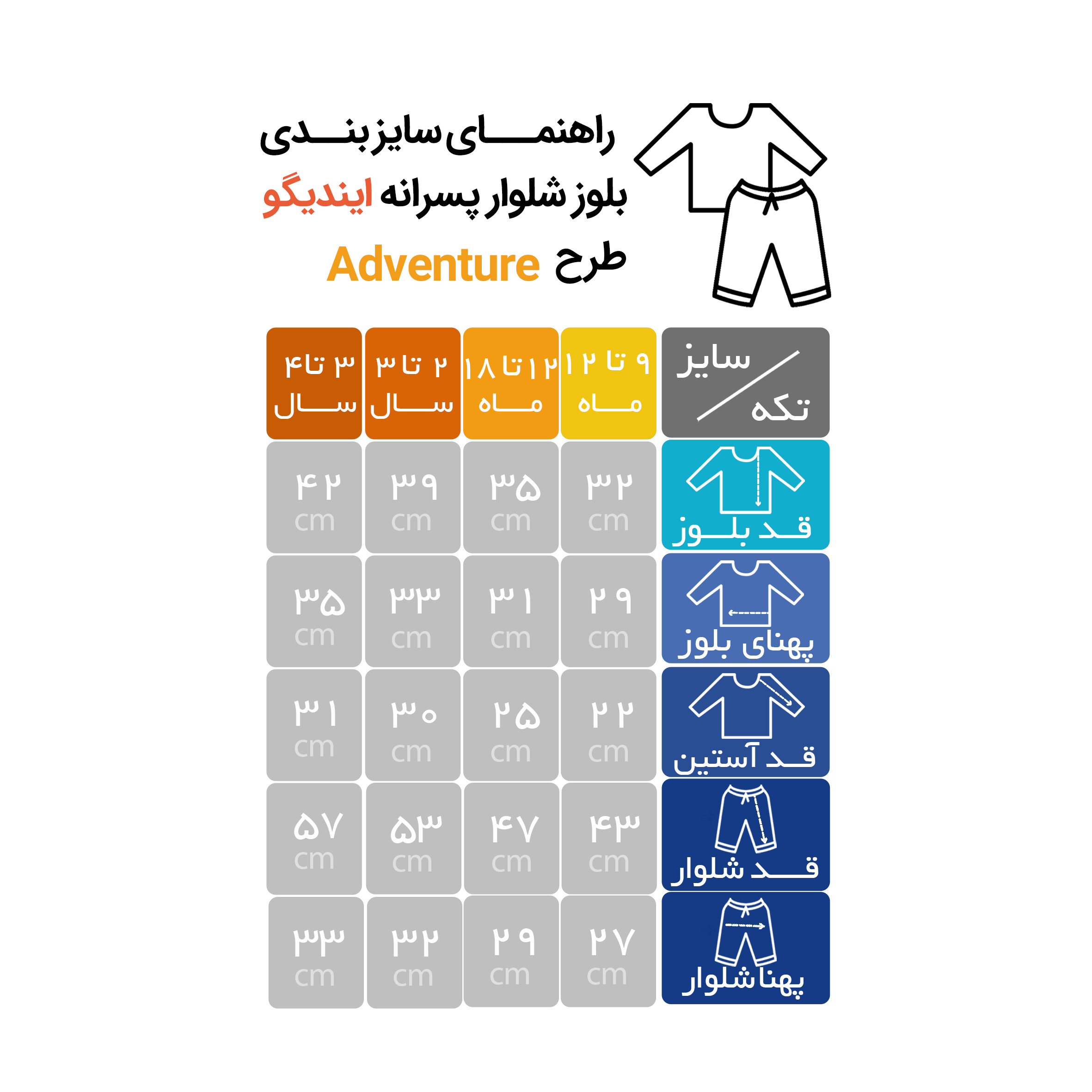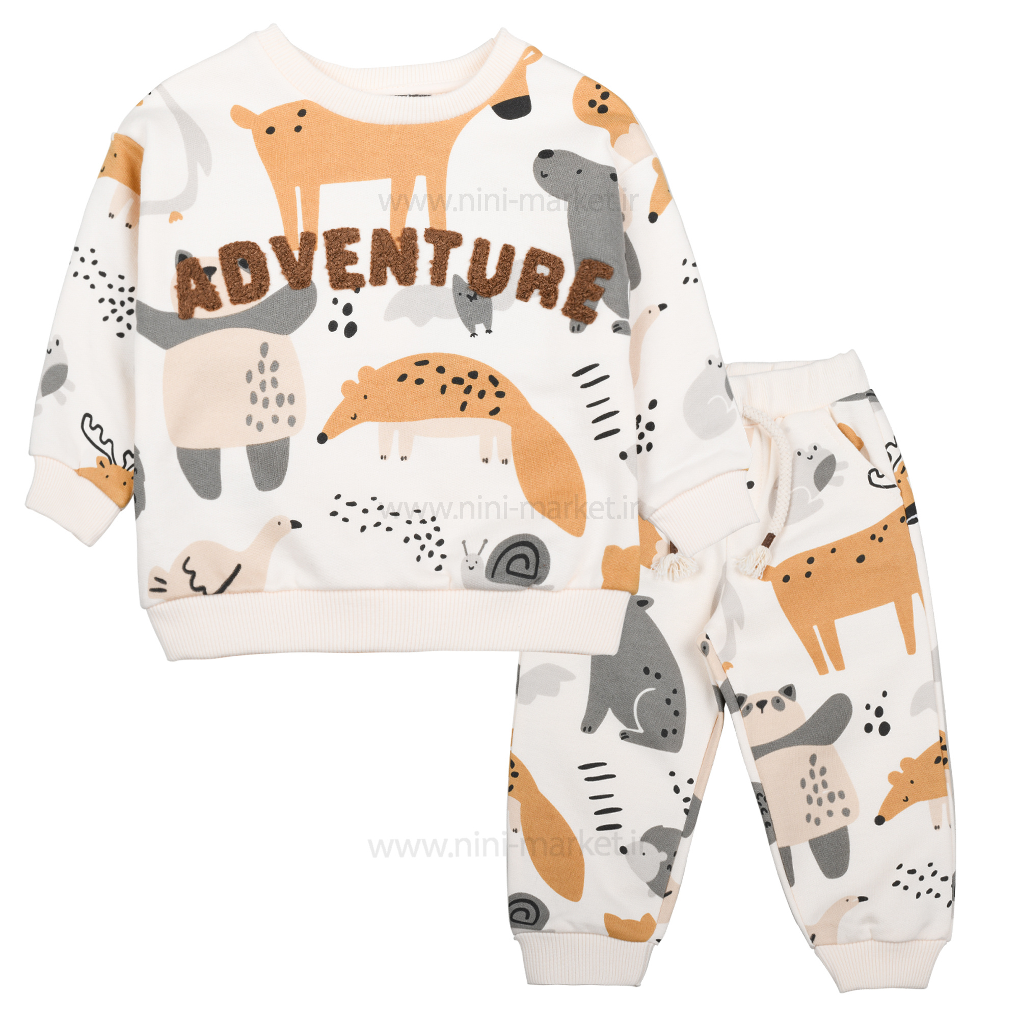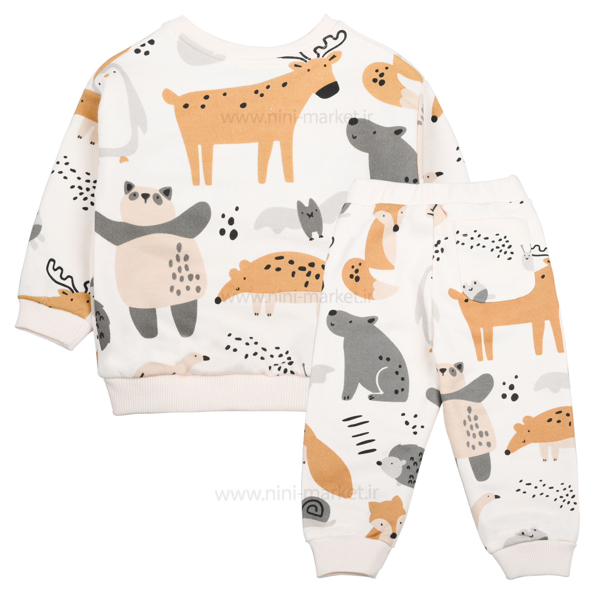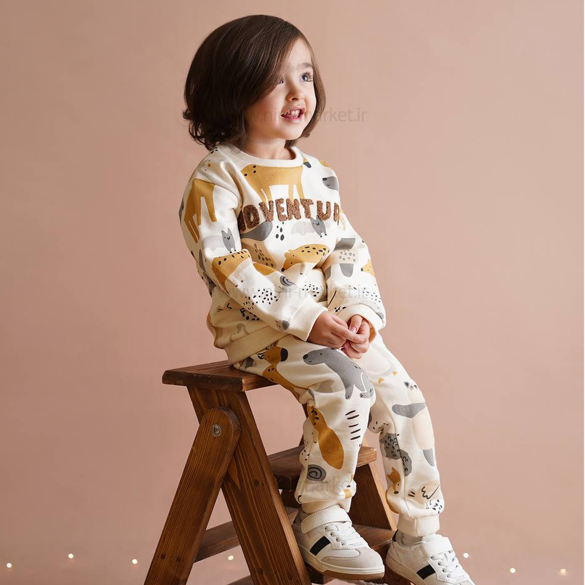 بلوز شلوار پسرانه طرح حیوانات رنگ کرم ایندیگو Indigo