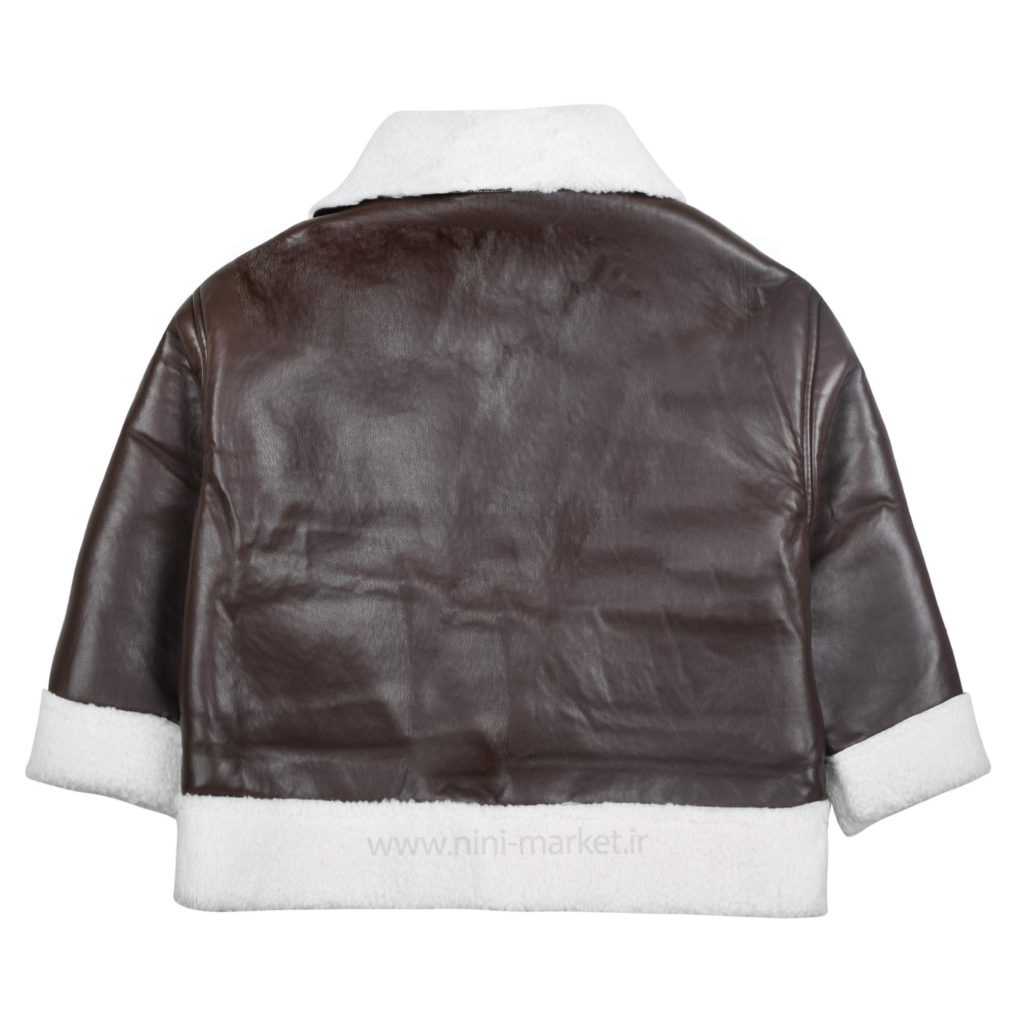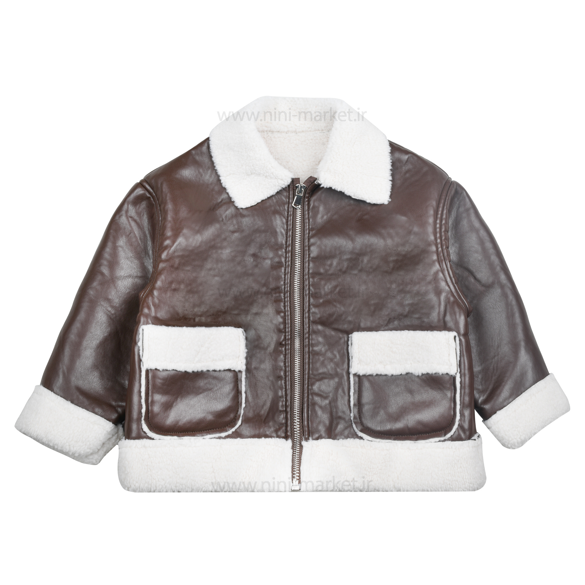 کاپشن چرم پسرانه طرح ساده رنگ قهوهای