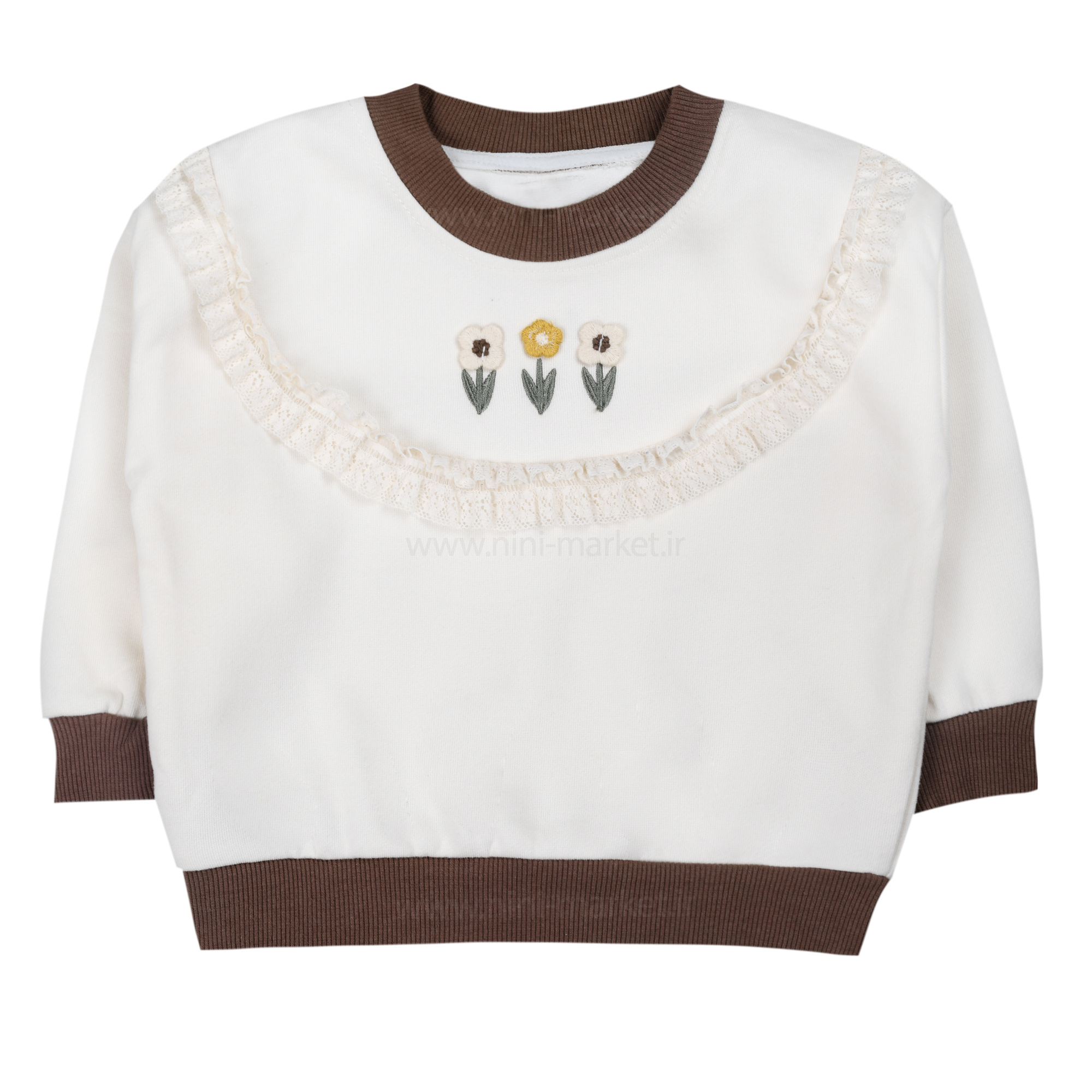 بلوز دورس دخترانه طرح گل و تور رنگ کرم