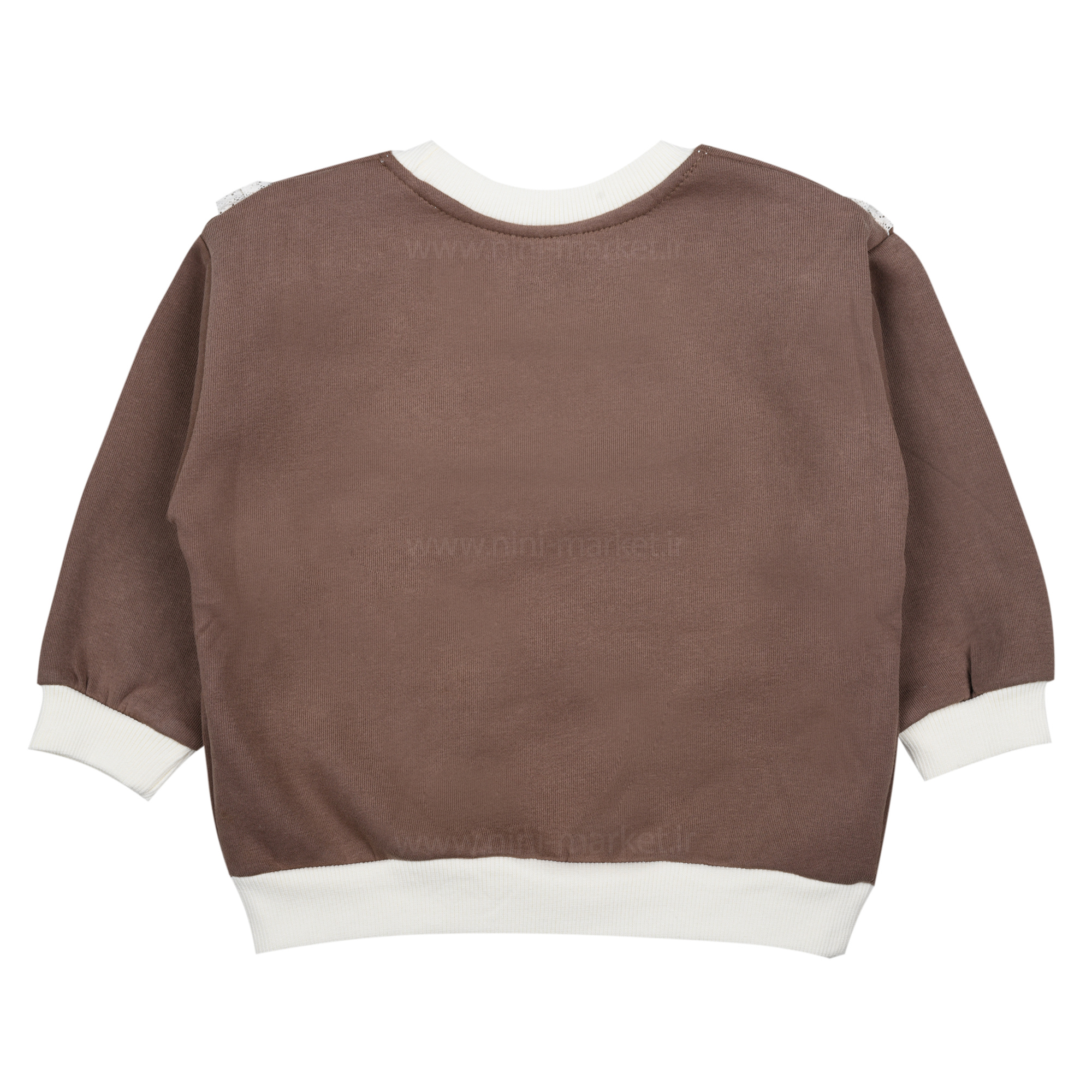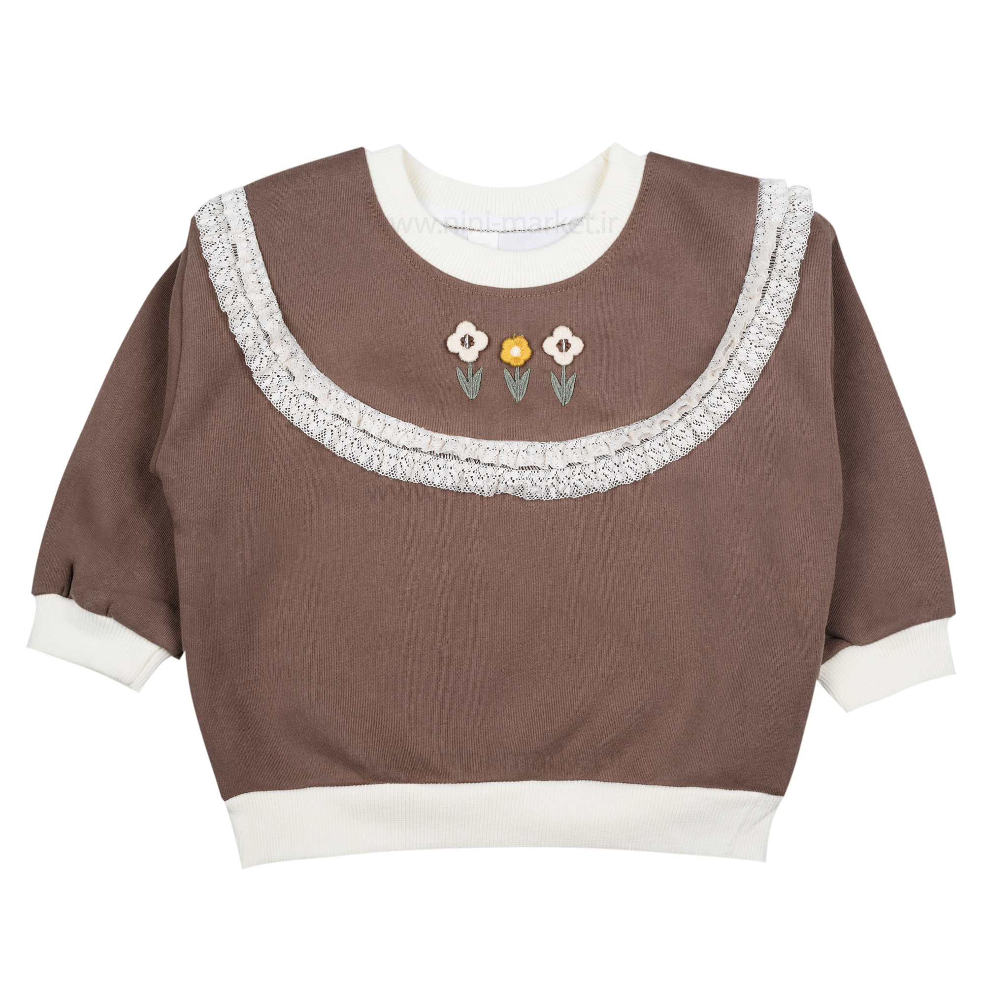 بلوز دورس دخترانه طرح گل و تور رنگ قهوه ای