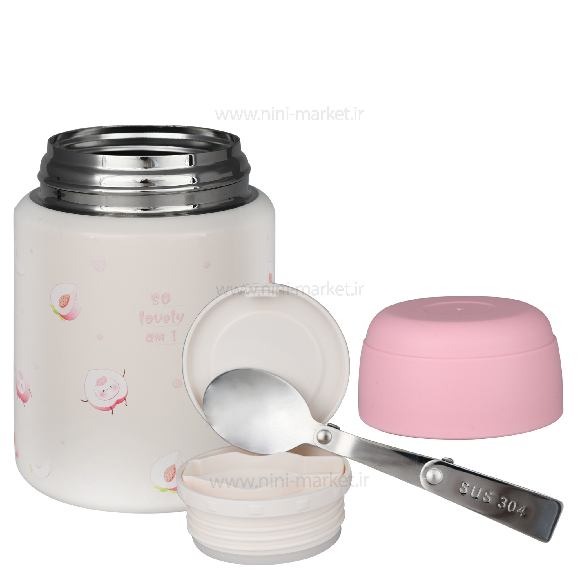 فلاسک غذا 500 میل طرح هلو رنگ کرم و صورتی سیمپلیسیتی Simplicity