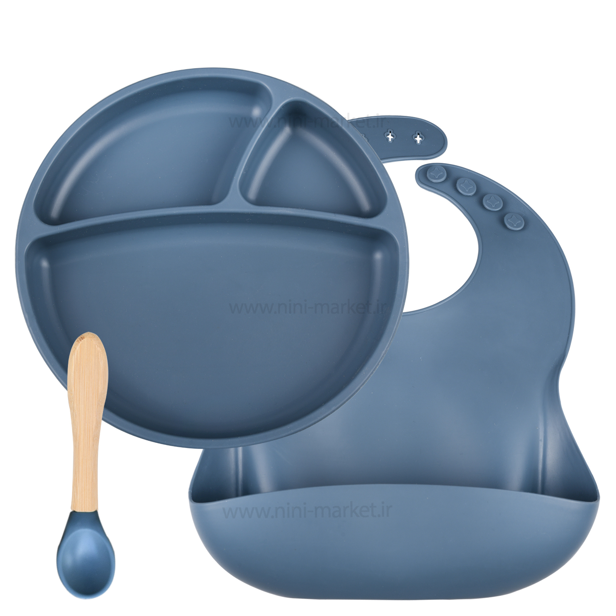 ست ظرف غذا تمام سیلیکونی 3 تکه رنگ سرمهای مینیک اویاوی MinikOiOi ساخته شده از 100 درصد سیلیکون درجه غذایی است. این ست 3 تکه یک ست کامل و کاربردی برای غذا خوردن کودکان است که به مرور زمان نرم میماند، ترک نمی خورد، پوسیده و شکننده نمیشود. این ست تشکیل شده از آیتم های زیر است: