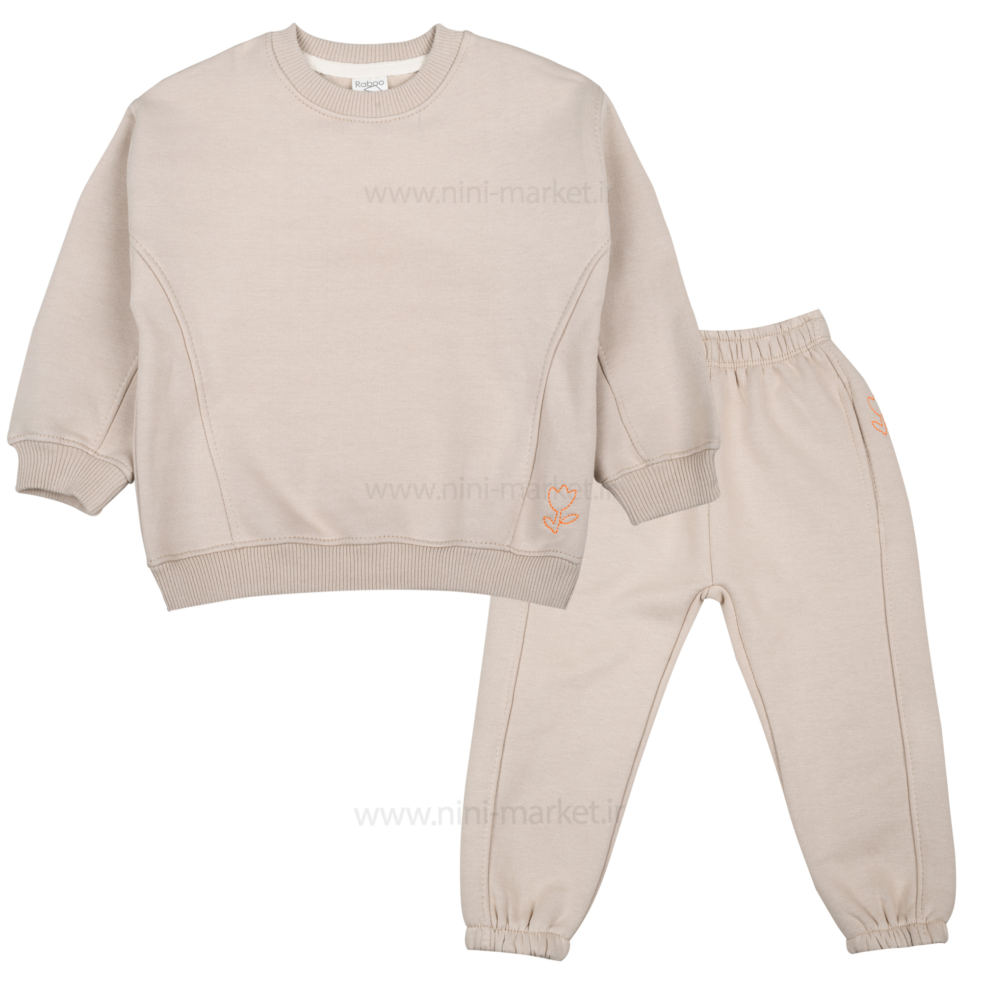بلوز شلوار دخترانه طرح گل لاله رنگ کرم برند رابو Raboo