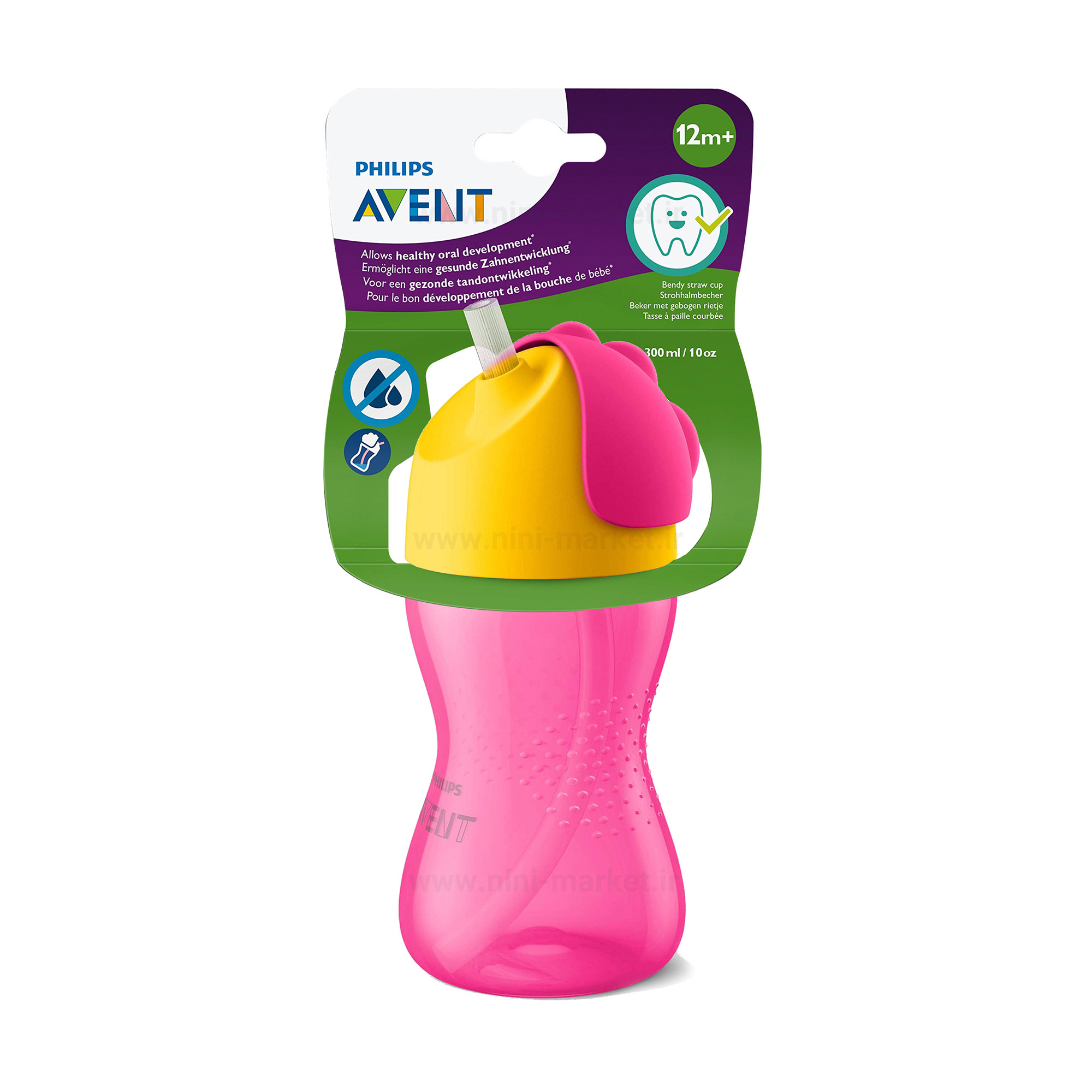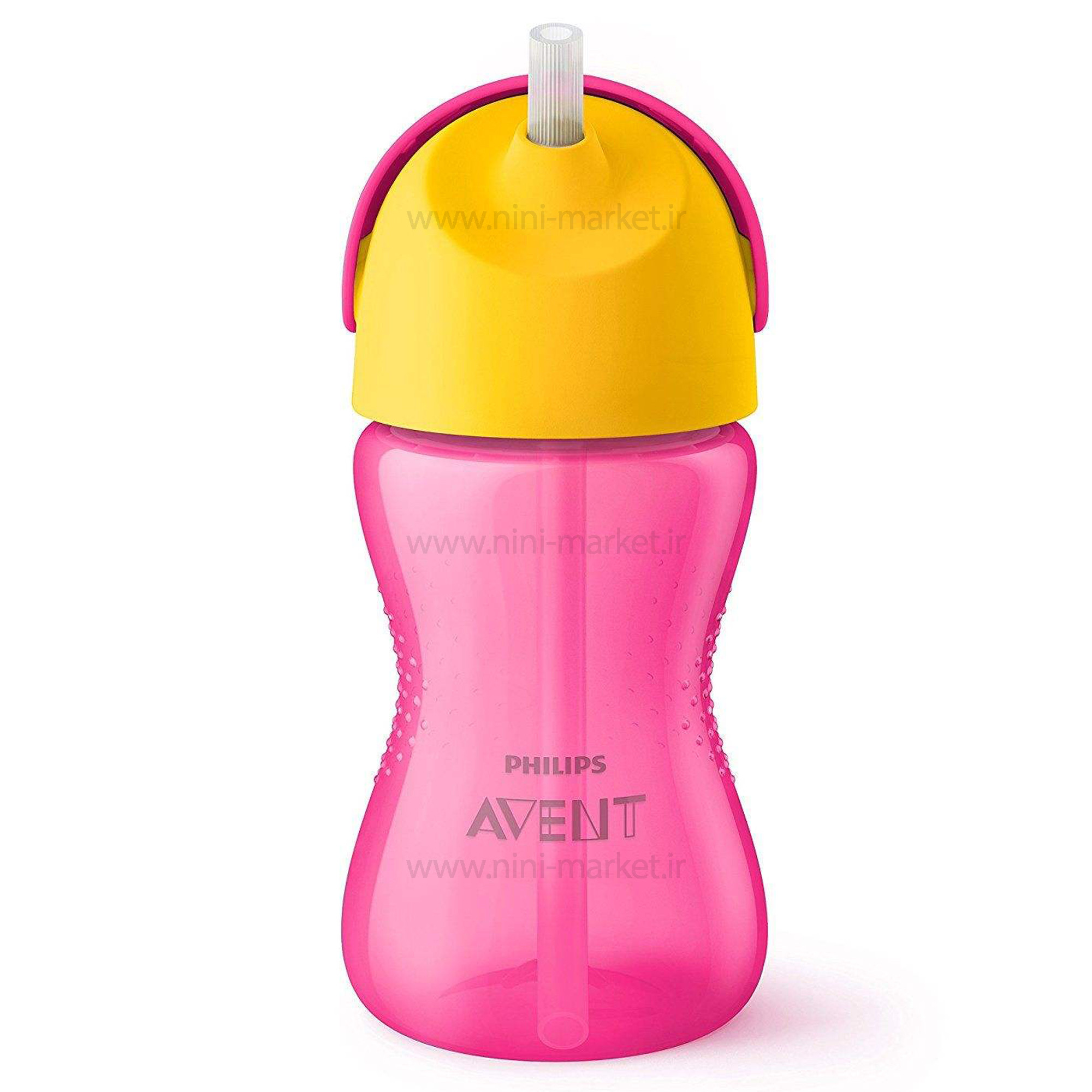 لیوان آبمیوه خوری نی دار صورتی 300 میل اونت Avent