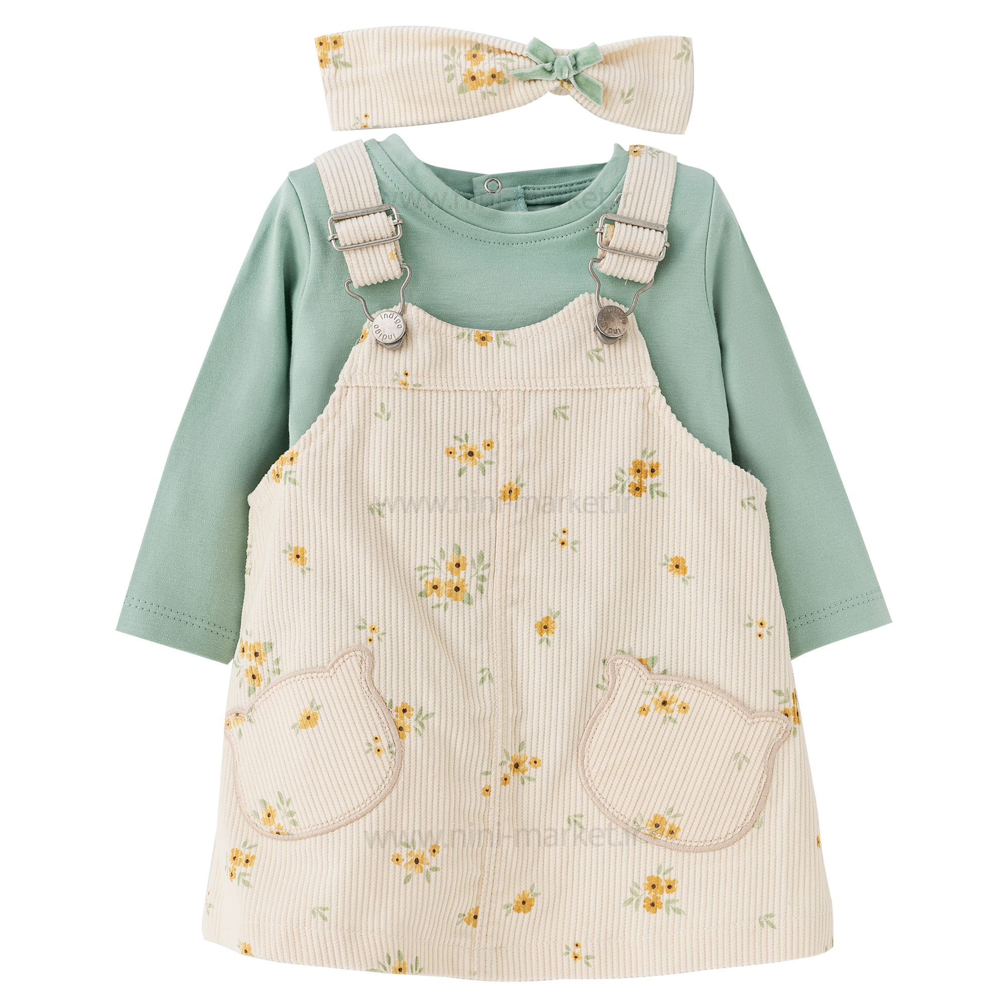 سارافون مخمل کبریتی طرح گل دار کرم سبز ایندیگو Indigo یک لباس زیبا و منحصربه‌فرد برای دختران است که با پترن گل به صورت چاپی روی سارافون جلوه زیبایی به آن بخشیده. این پیراهن همراه با تل زیبایی که به شکل هماهنگ با لباس طراحی شده که ظاهر کودک شما را کامل می‌کند همچنین دو بند قابل تنظیم با قد کودک دلبند شما دارد. تل با جزئیات مشابه پیراهن از پارچه‌ای لطیف و راحت تهیه شده که مناسب برای استفاده طولانی‌مدت است. این ست زیبا چه برای مهمانی‌ها و چه برای استفاده روزانه، انتخابی ایده‌آل و مناسب برای کودکان در گروه‌های سنی مختلف است و همچنین برای والدینی که به دنبال لباسی خاص و شیک برای دختر خود هستند، گزینه‌ای عالی است.