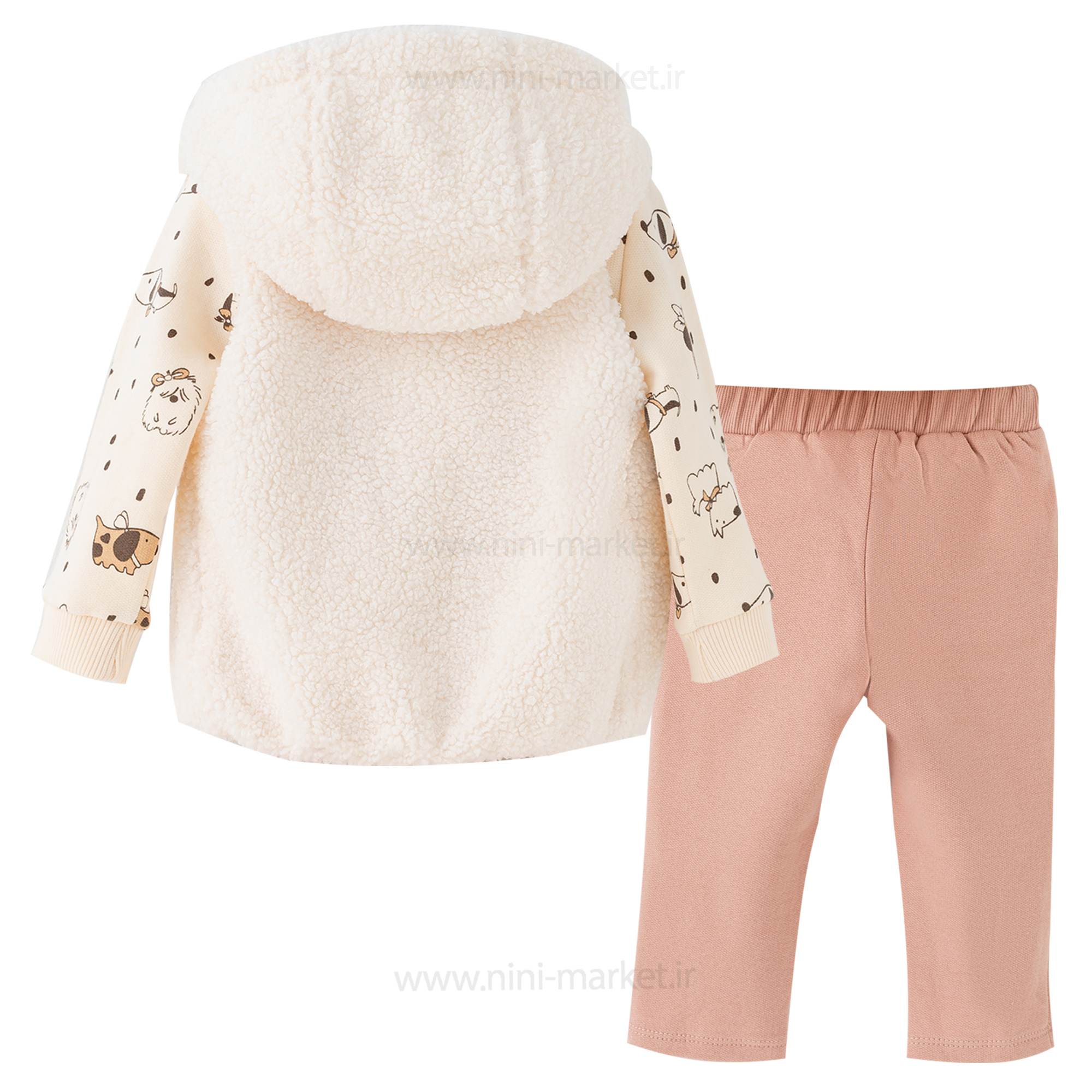 سه تکه دخترانه طرح تدی رنگ کرمی ایندیگو Indigo