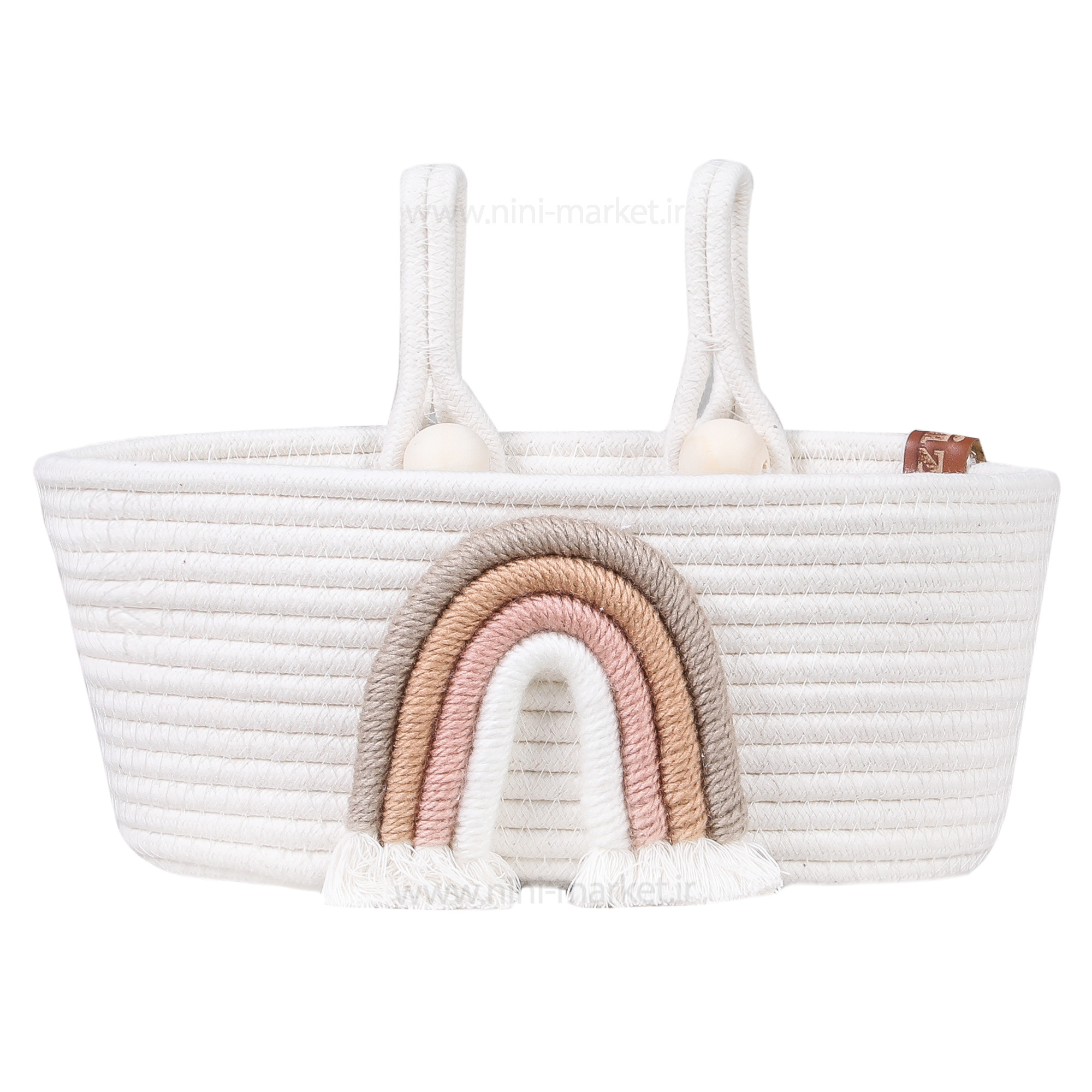 سبد کنار تختی کوچک طرح رنگین کمان رنگ کرم ایسیزIsiz