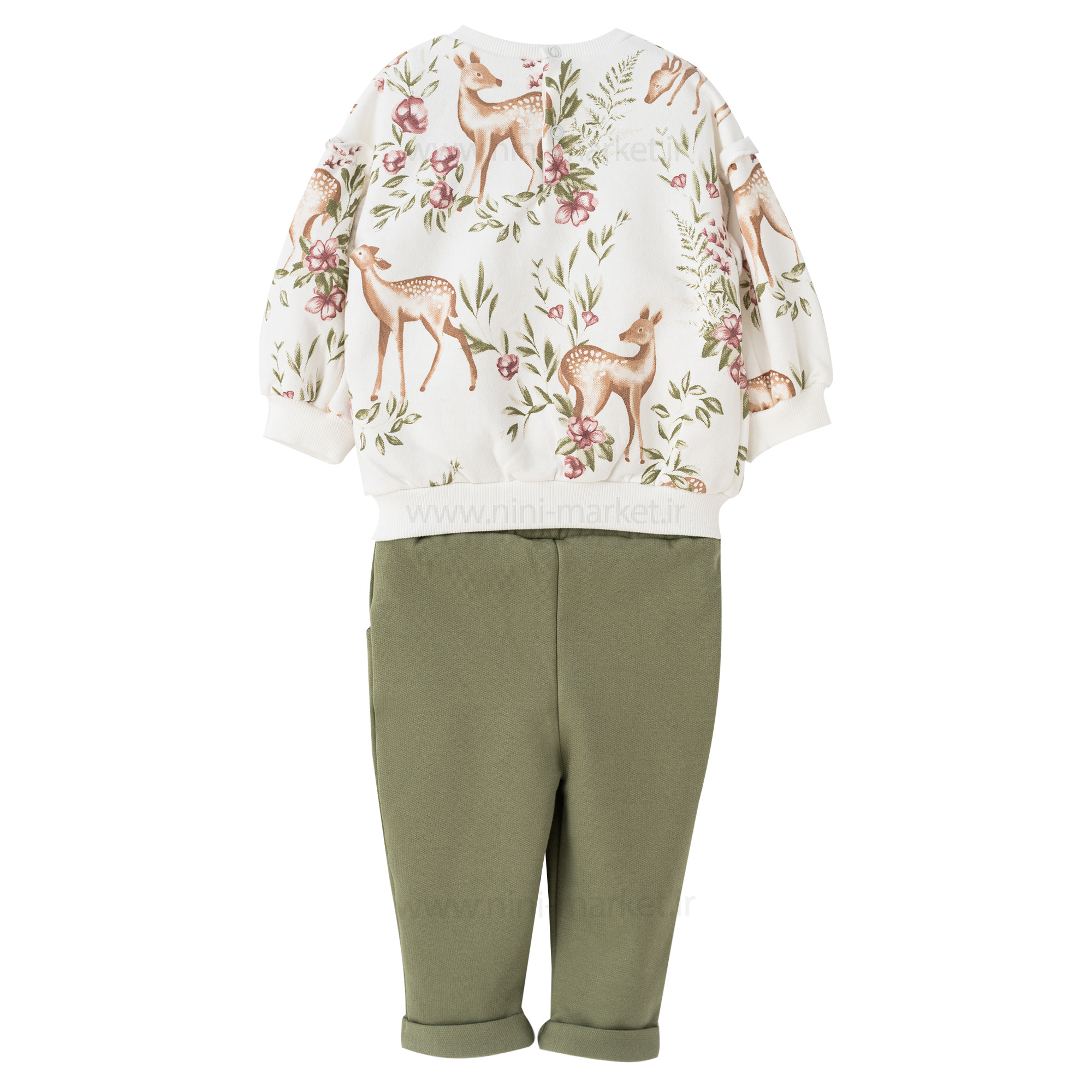 بلوز شلوار دخترانه طرح آهو رنگ سبز ایندیگو Indigo