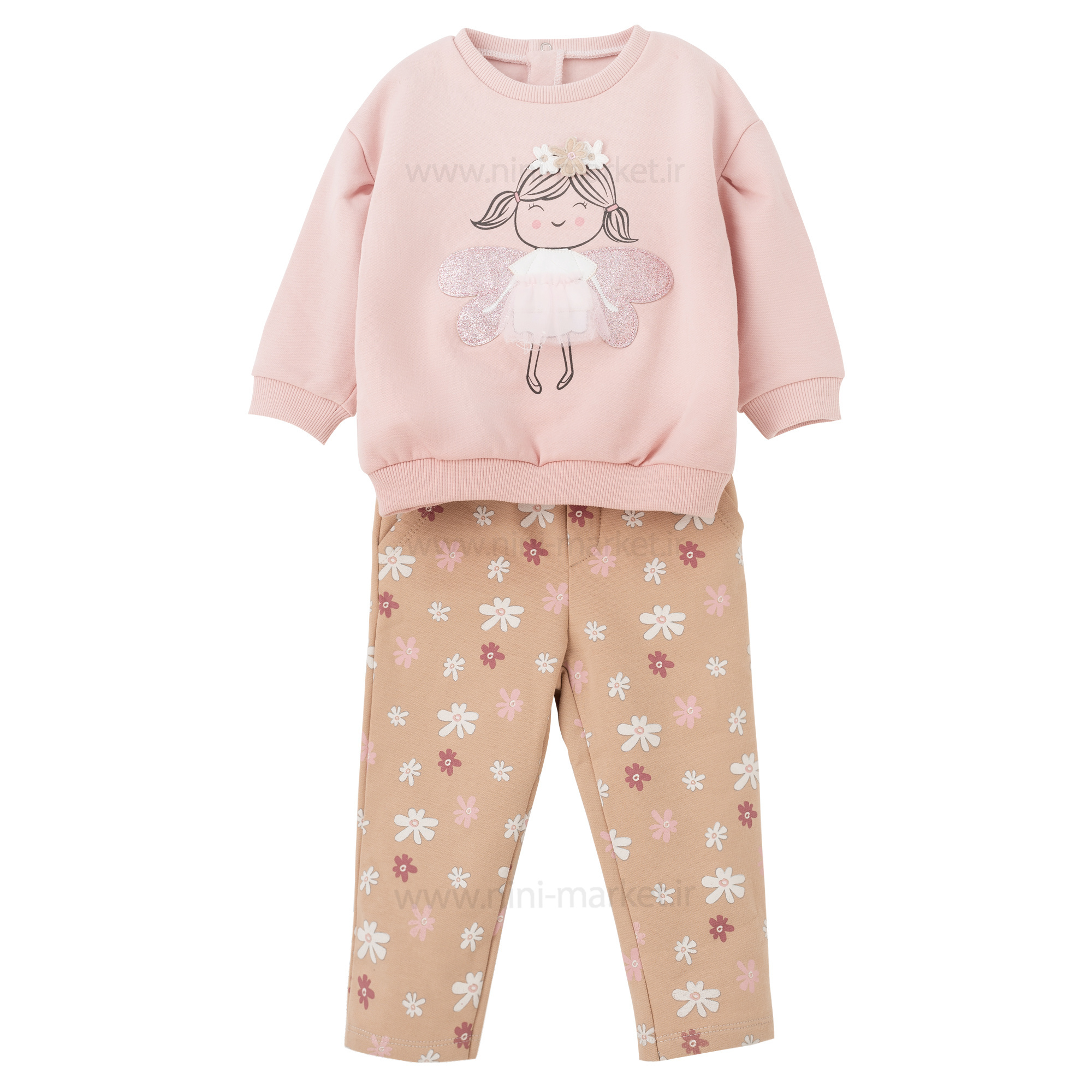 بلوز شلوار دخترانه طرح فرشته رنگ صورتی - کرم ایندیگو Indigo