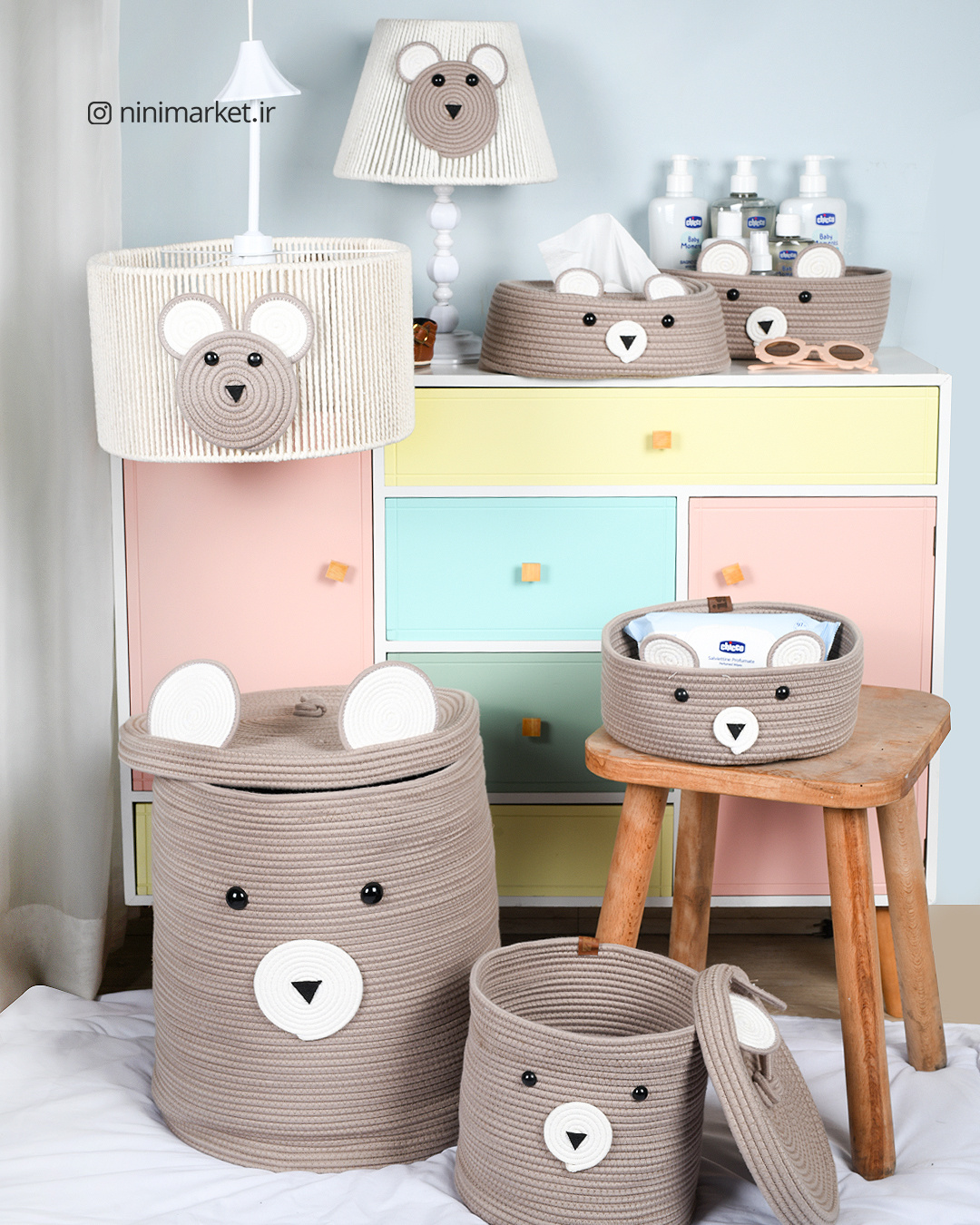 یکی از لوازم ضروری و کاربردی برای اتاق کودک، جای دستمال‌کاغذی می‌باشد.زمانی که می‌خواهید برای اتاق کودک، جا دستمال‌کاغذی تهیه کنید، باید به این نکته توجه داشته باشید که شکل و الگو جذابی داشته باشد.از طرفی مدلی را انتخاب کنید که بتوانید آن را با دیگر لوازم و اکسسوری‌های اتاق کودک ست کنید.همچنین اندازه جا دستمال‌کاغذی باید به صورتی باشد که دستمال‌کاغذی به‌راحتی درون آن قرار بگیرد جای دستمال کاغذی طرح خرس رنگ کرم ایسیز Isiz یکی از زیباترین و جذاب‌ترین جا دستمال‌کاغذی‌ها، نسبت به نمونه‌های مشابه است.جنس محصول فوق کنفی می‌باشد که طرح آن کاملاً کودکانه و جذاب است.دکمه‌ای در پشت این محصول قرار دارد که با باز نمودن آن قسمت زیرین باز می‌شود و شما می‌توانید به‌راحتی دستمال‌کاغذی را درون آن قرار دهید.رنگ این جا دستمال‌کاغذی بسیار شاد و کودکانه است که شما می‌توانید با دیگر لوازم برند Isiz مانند لوستر، آباژور، سبد بهداشتی و … به‌راحتی ست کنید.