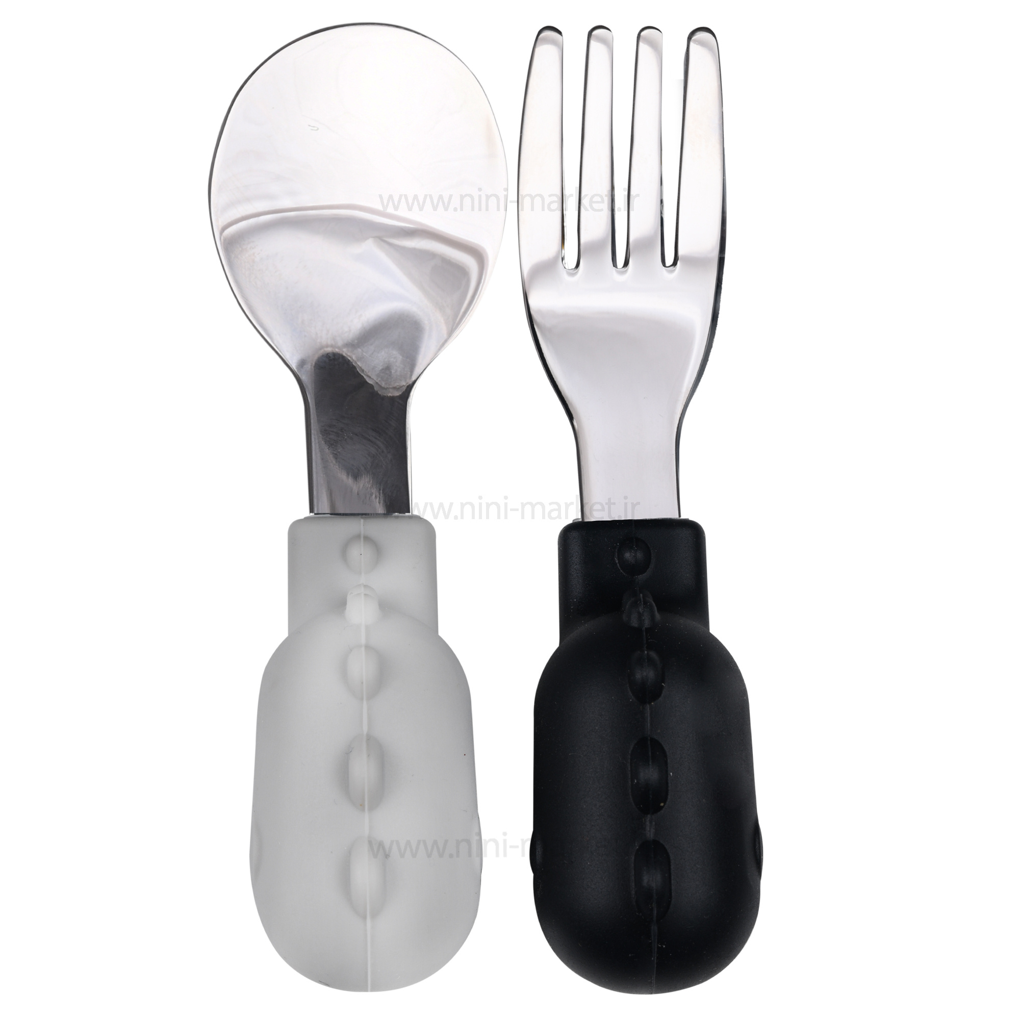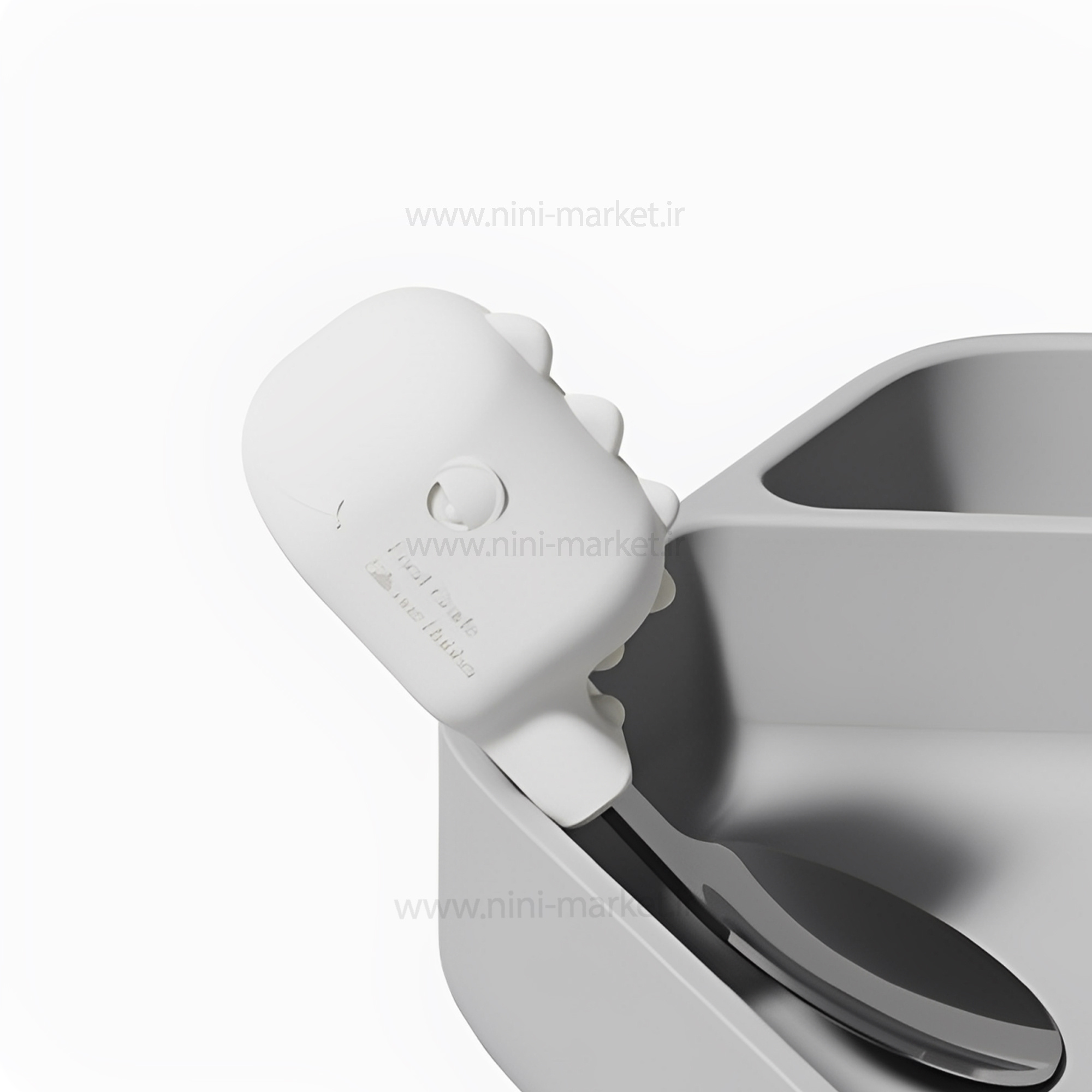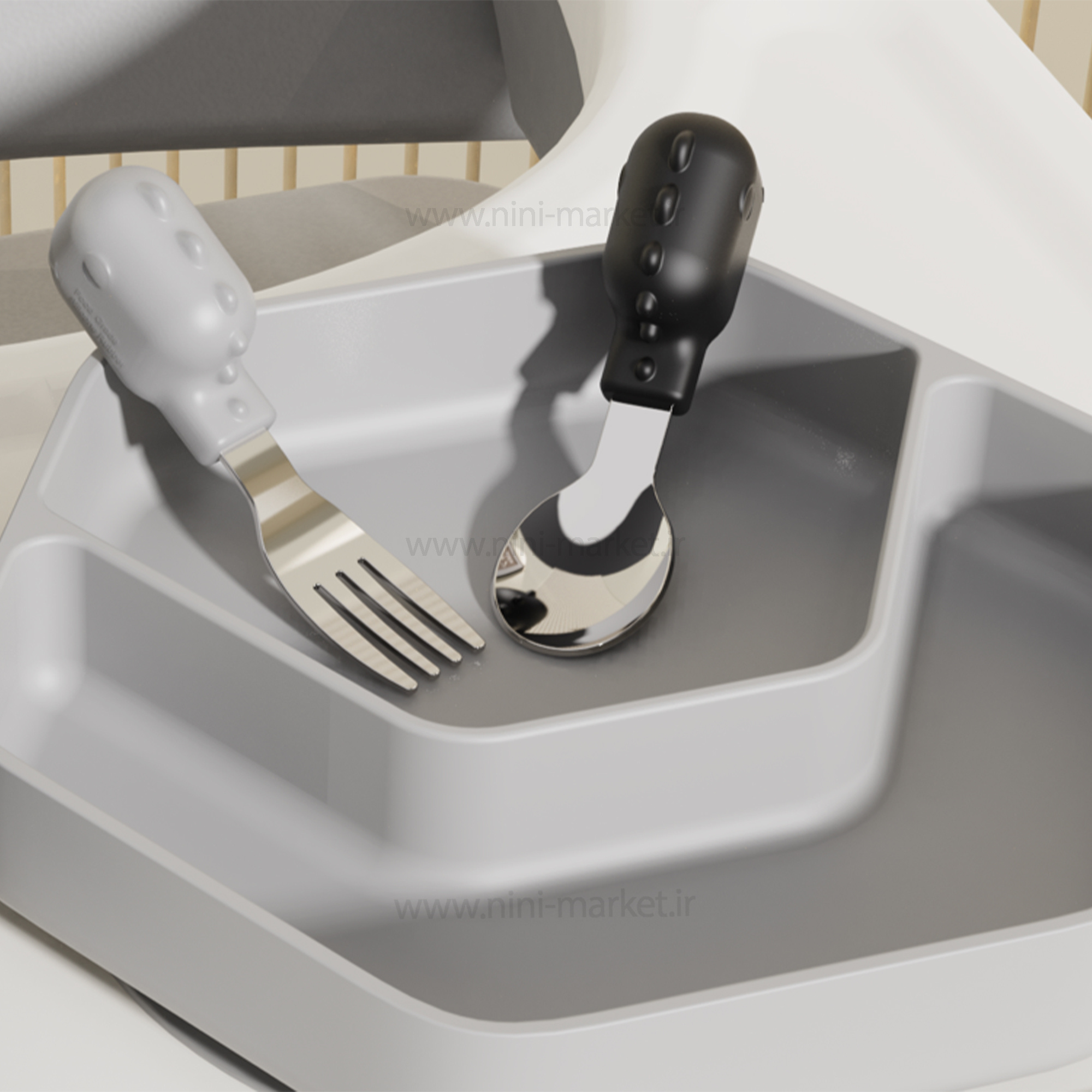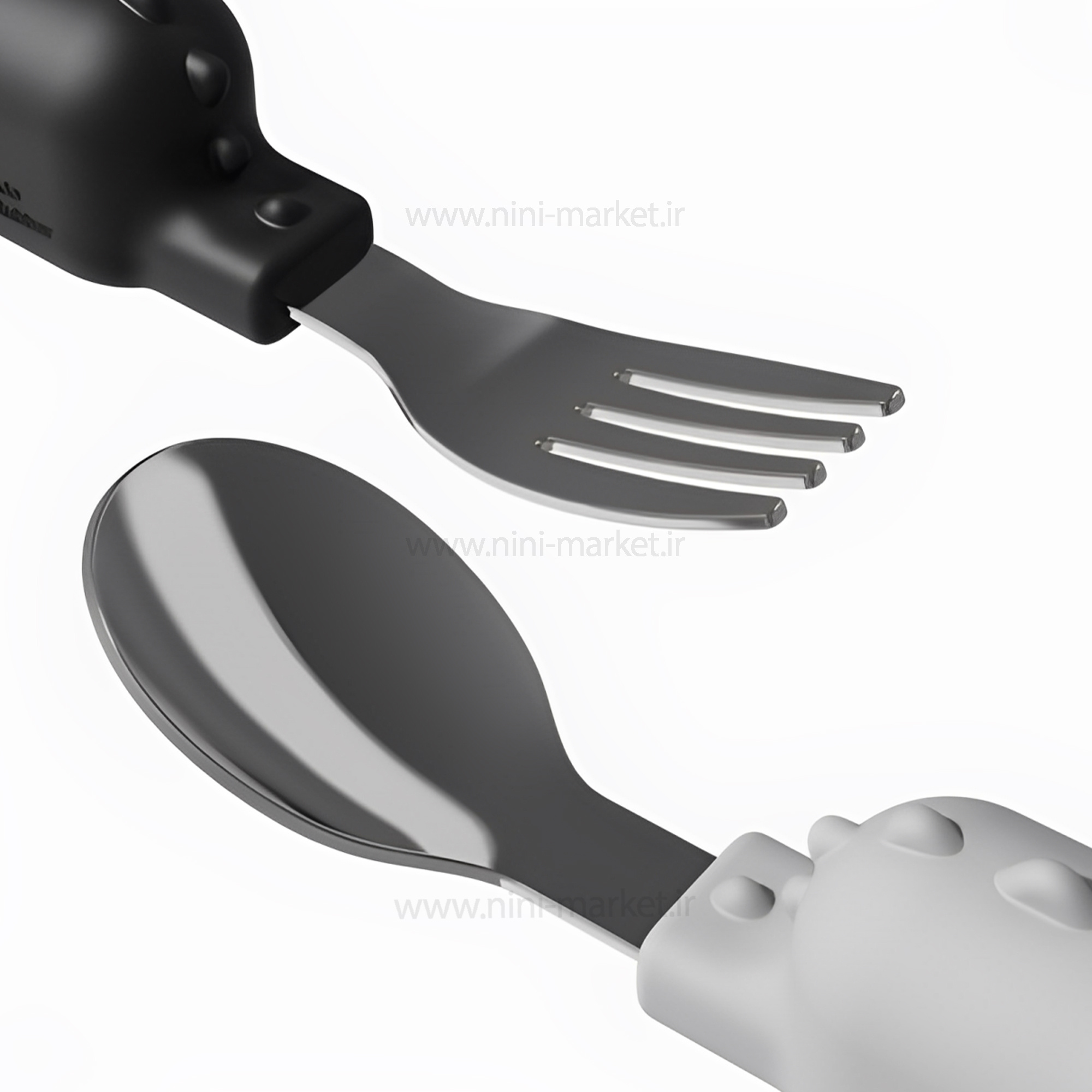 ست قاشق و چنگال طرح دایناسور رنگ طوسی مشکی هیاورشی HeOrShe