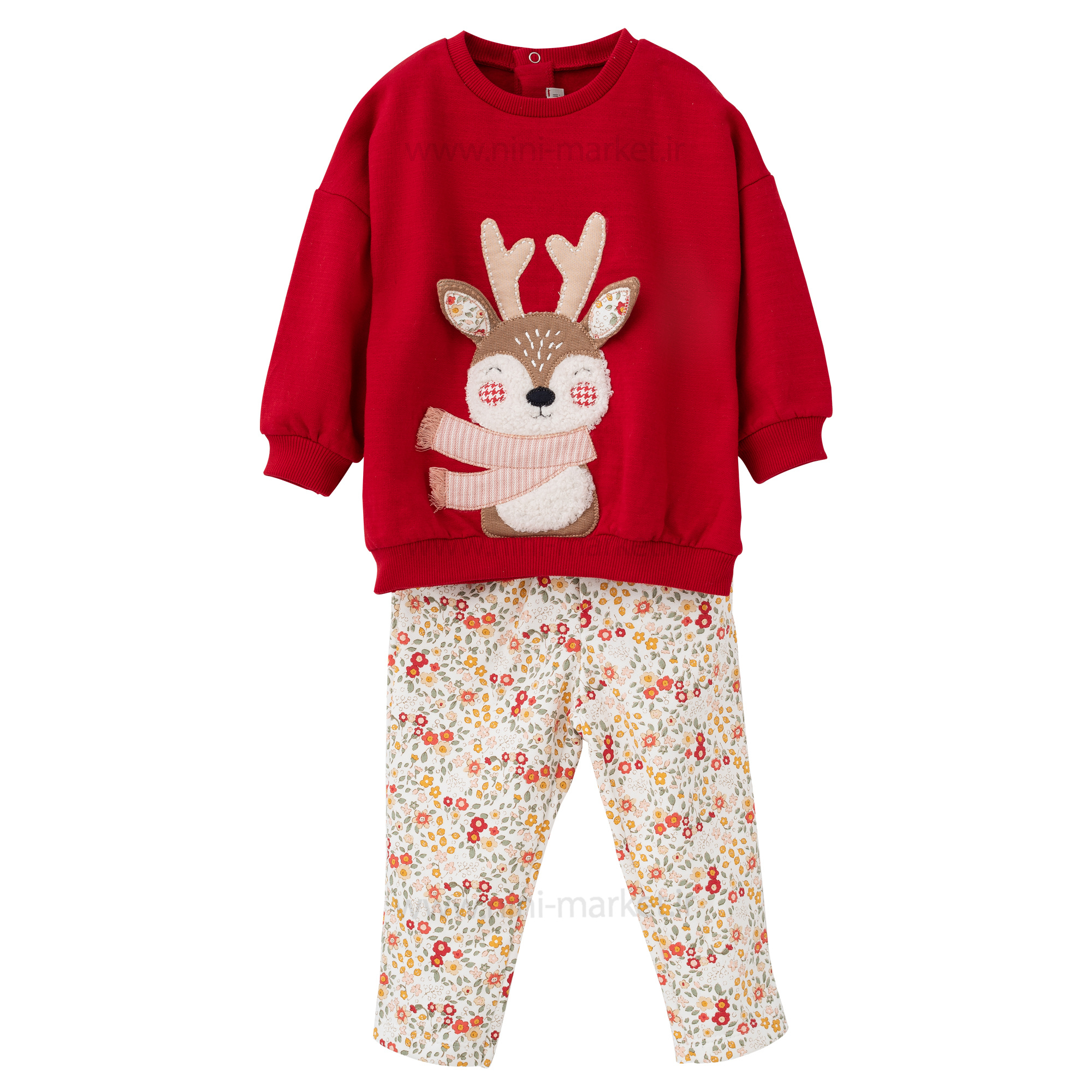 بلوز شلوار دخترانه طرح گوزن رنگ قرمز ایندیگو Indigo