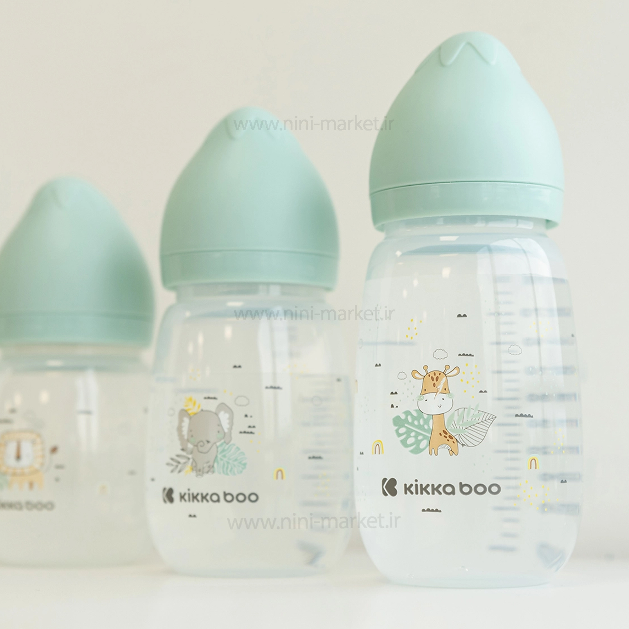 شیشه شیر آنتیکولیک 310 میل طرح زرافه رنگ سبز کیکابو Kikkaboo