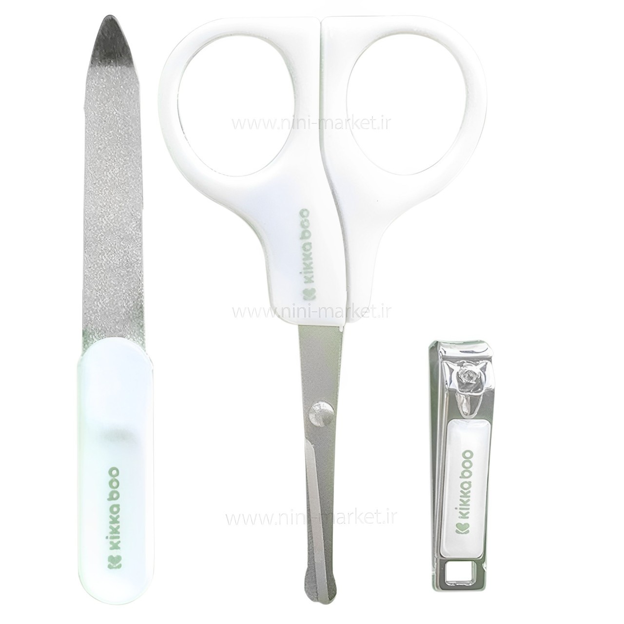 ست مانیکور طرح شیر رنگ سبز کیکابو Kikkaboo، یک ست 3 تکه شامل: ناخنگیر، قیچی لبه گرد و سوهان ناخن است. تیغه قیچی این ست، از استیل کوچک و لبه گرد ساخته شده که ماد میتواند بدون هیچ خطری از آن استفاده کند. قسمت های فلزی این ست از استیل ضد زنگ ساخته شده است و فاقد مواد شیمیایی BPA هستند.
