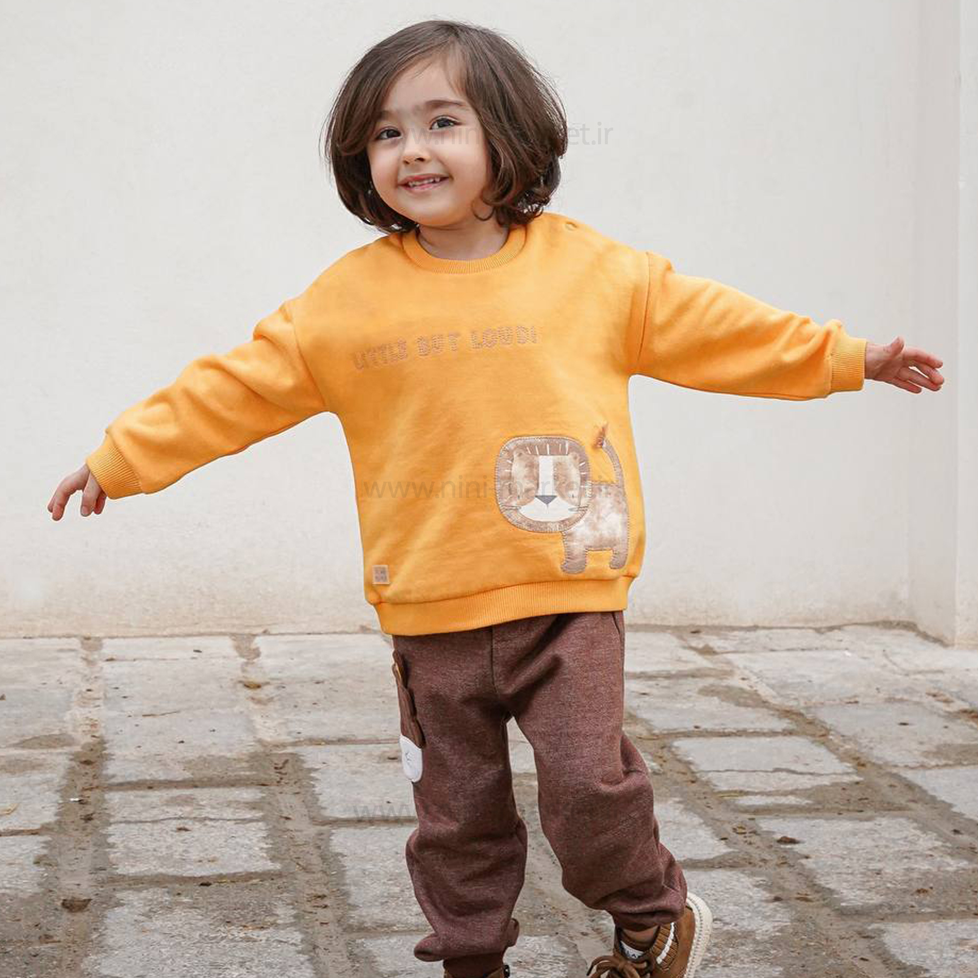 بلوز شلوار پسرانه طرح شیر رنگ زرد ایندیگو Indigo