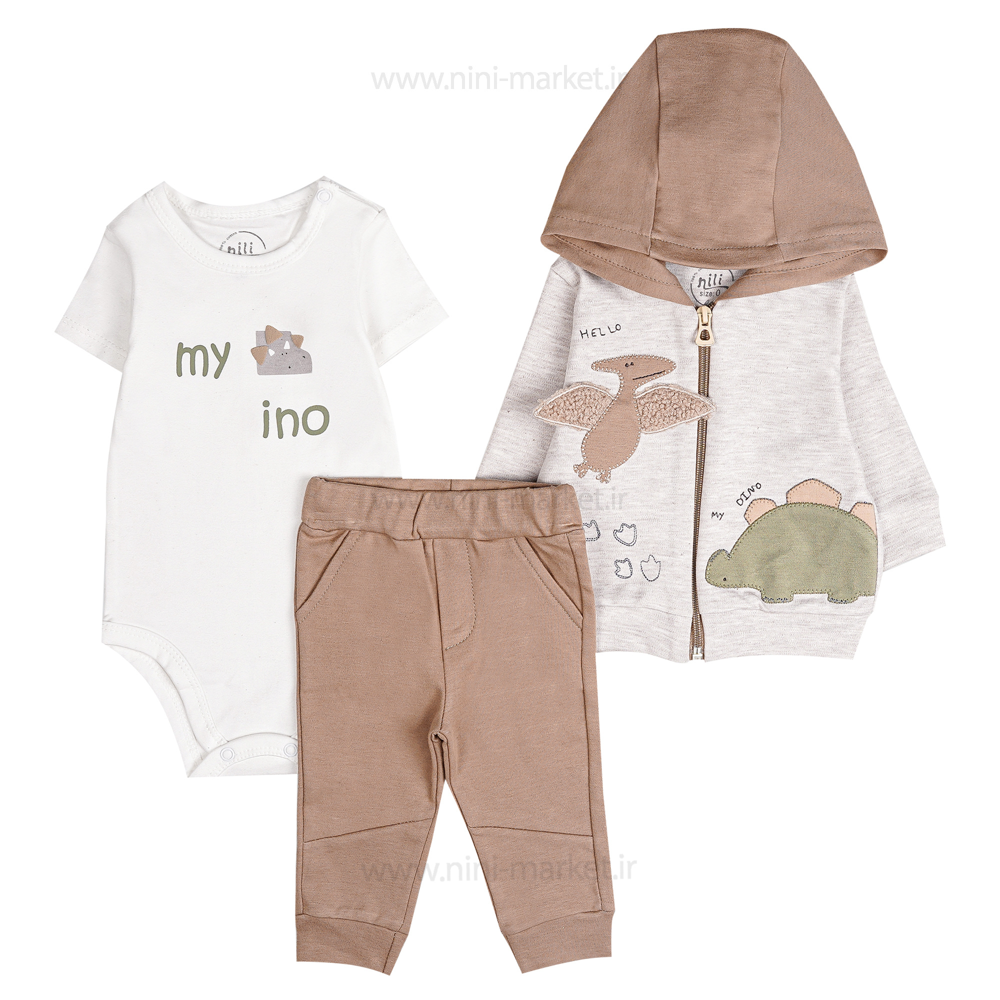 سه تکه پسرانه ژوارسیک رنگ کرم نیلی nili