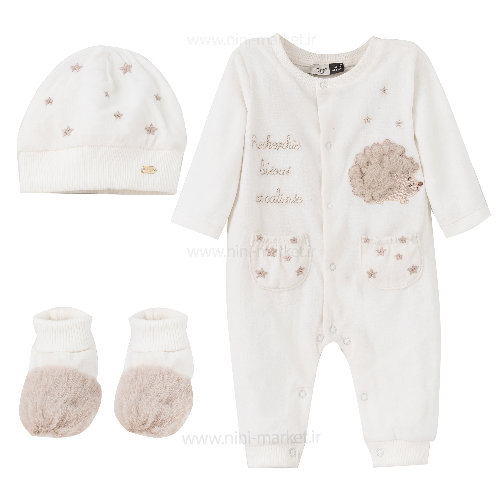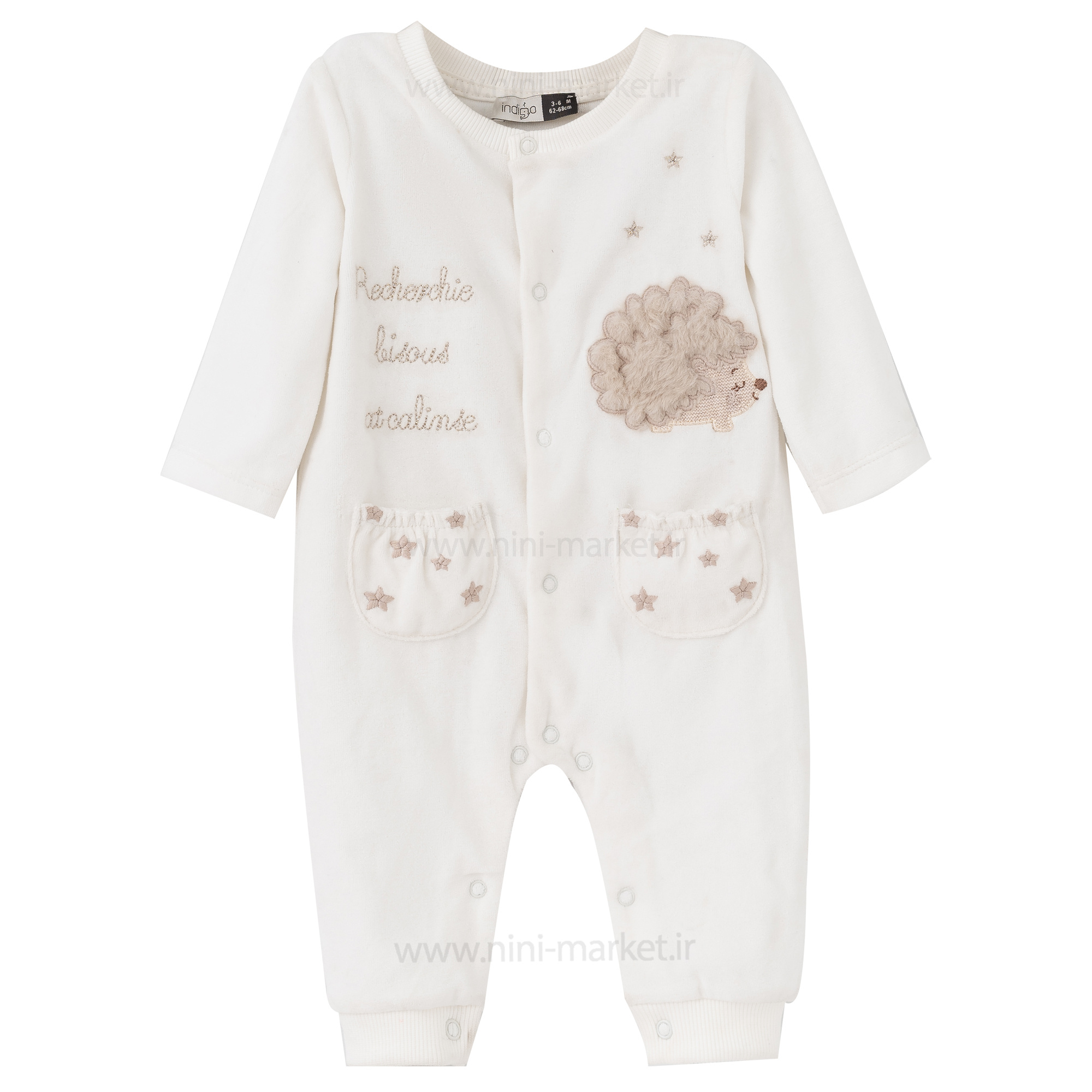 سرهمی مخمل اسپرت طرح جوجه تیغی رنگ سفید-کرم ایندیگوIndigo مچدار میباشد تا از ورود سرما به بدن کودک دلبندتان جلوگیری کند. رنگ زمینه آن سفید و روی لباس طرح جوجه تیغی بهصورت تکهدوزی درآمده است. این سرهمی از جنس نخ پنبه پشمی مناسب برای فصلهای پاییز و زمستان میباشد. لطافت محصول و کیفیت دوخت عالی یکی از صفات مهم این سرهمی است. پس از مشاهده سرهمی از نزدیک به کیفیت بالای دوخت و پارچه آن پی خواهید برد. جلو لباس دکمه تعبیه شده تا راحت آن را به کودک دلبندتان بپوشانید. این ست به صورت مجزا داری جوراب می باشد که از سردشدن و کثیفشدن پاهای نوزاد جلوگیری میکند. همچنین همراه با این سرهمی پسرانه یک کلاه و پیشبند وجود دارد که از سر و گوشهای در برابر سرما محافظت میکند.