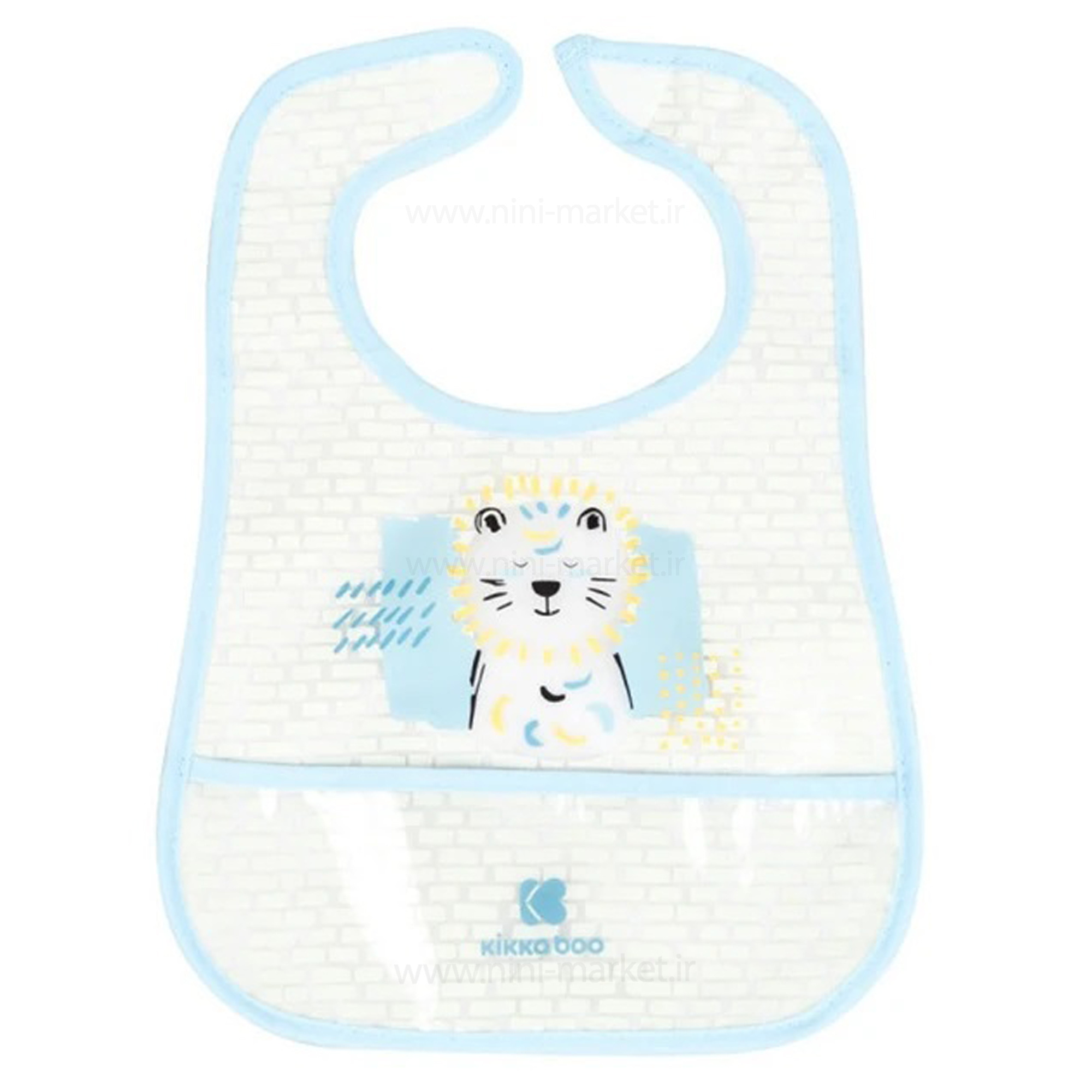 پیشبند سیلیکونی پشت حوله ای تکی طرح شیر رنگ آبی Kikkaboo