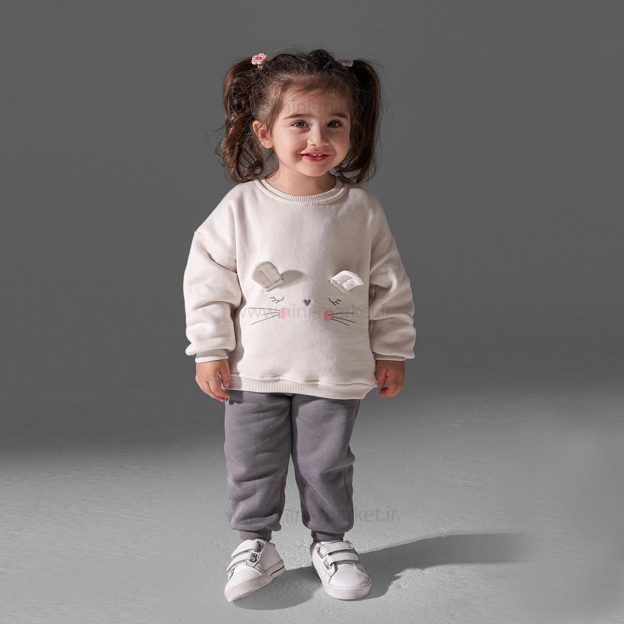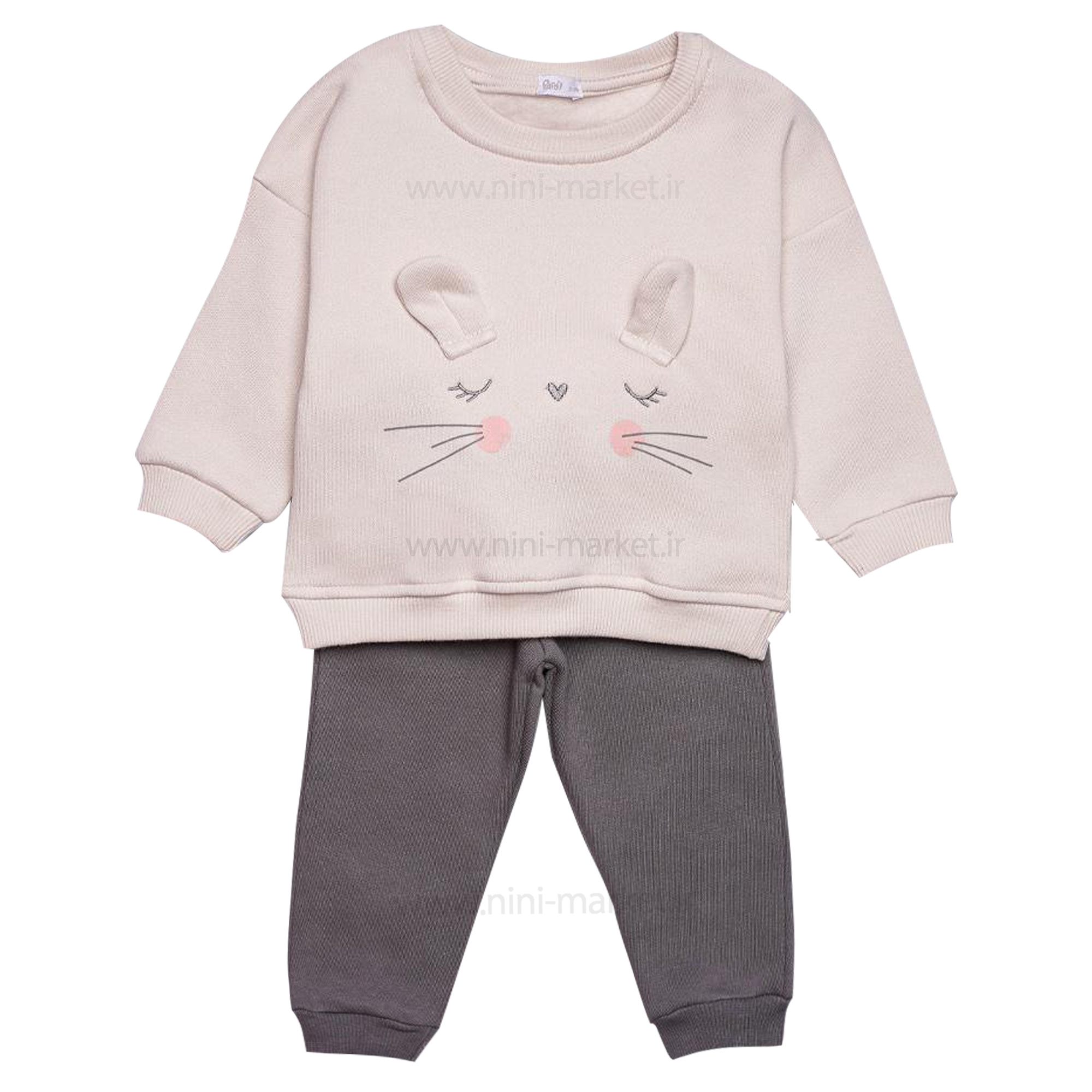 بلوز شلوار اسپرت طرح خرگوش رنگ کرم طوسی پاپو Papo