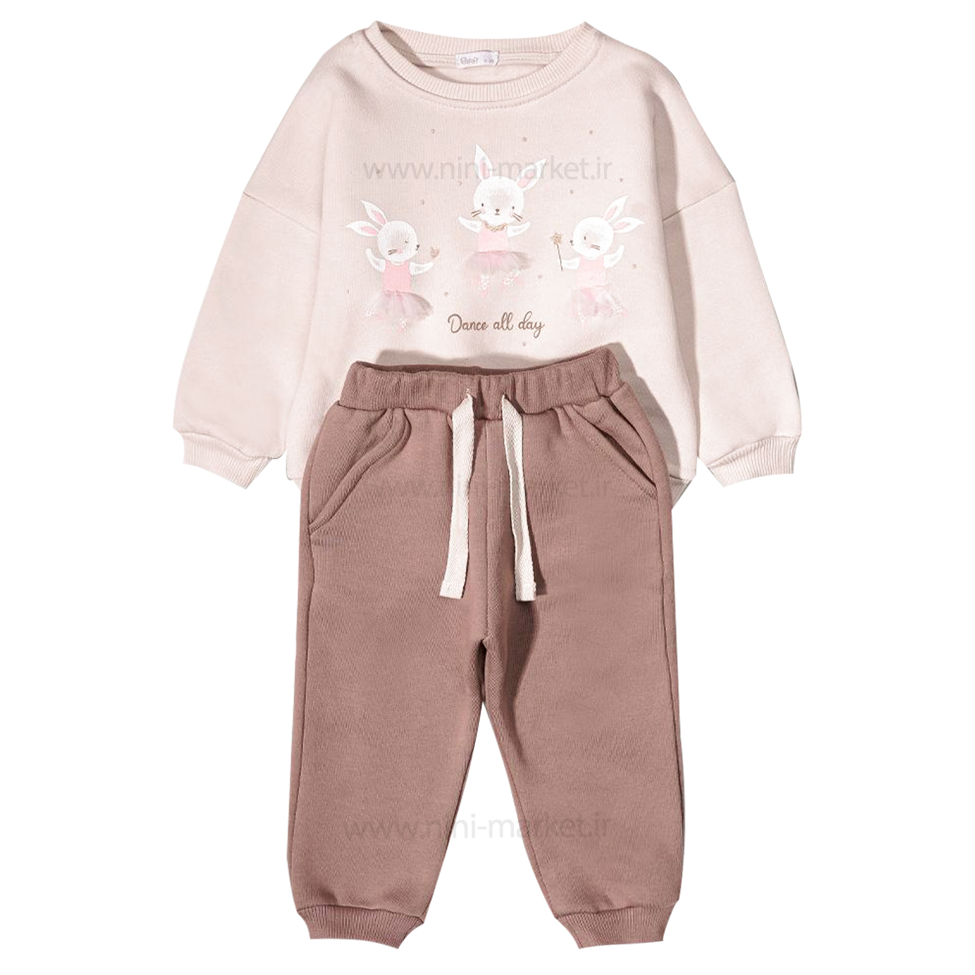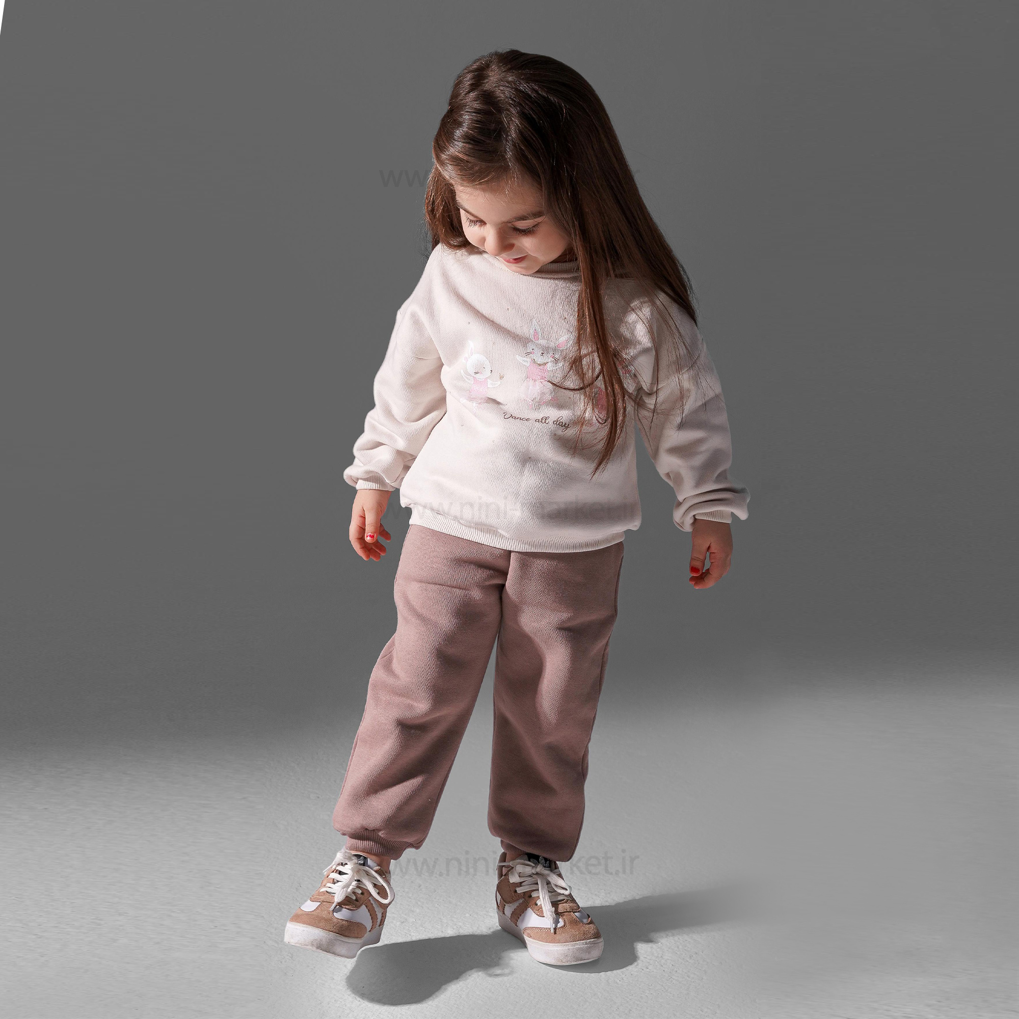 بلوز شلوار دخترانه طرح خرگوش بالرین رنگ کرم قهوه ای پاپو Papo