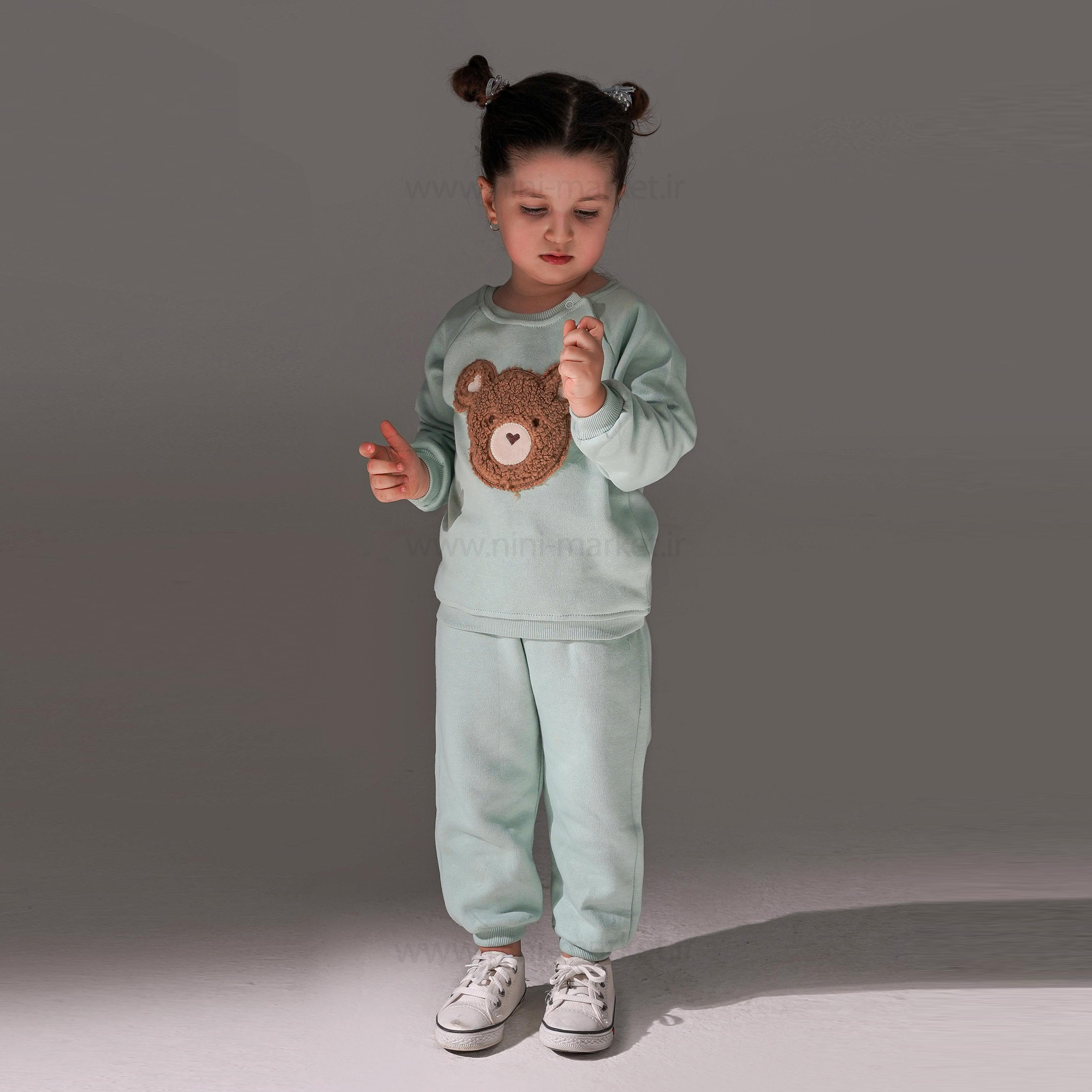 بلوز شلوار اسپرت طرح خرس رنگ سبز پاپو Papo