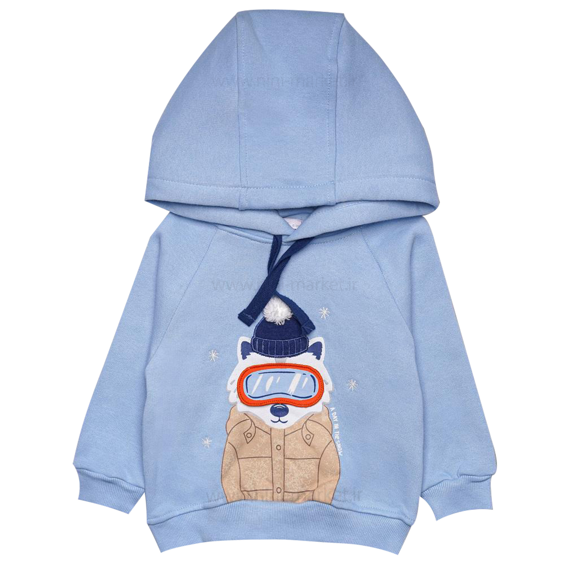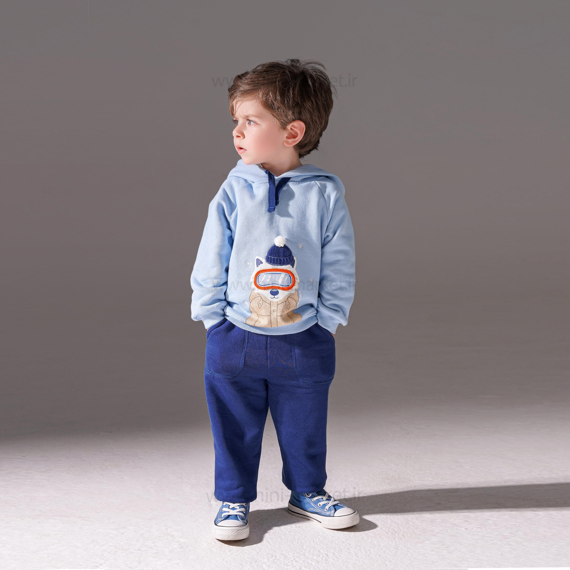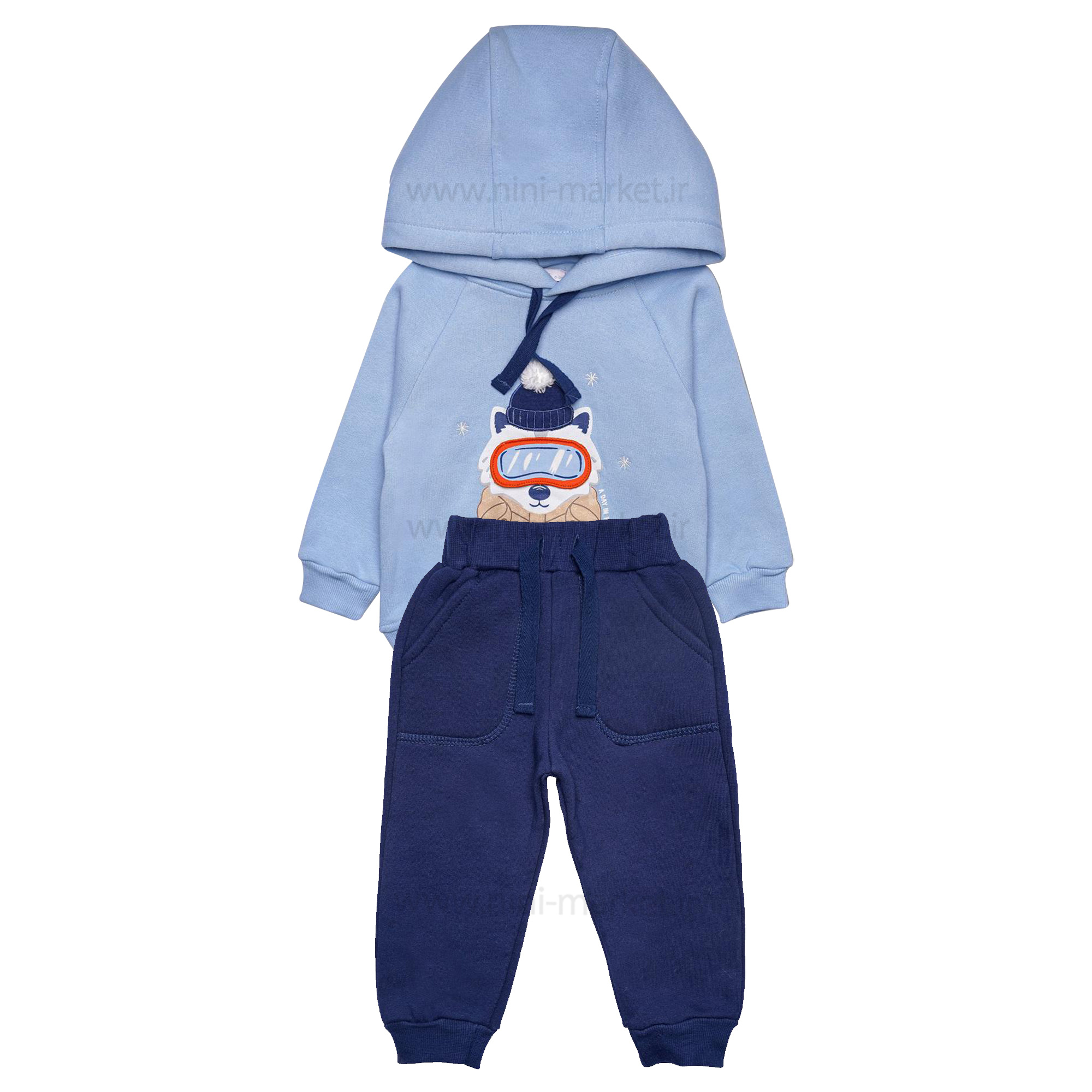 هودی شلوار پسرانه طرح گرگ رنگ آبی پاپو Papo