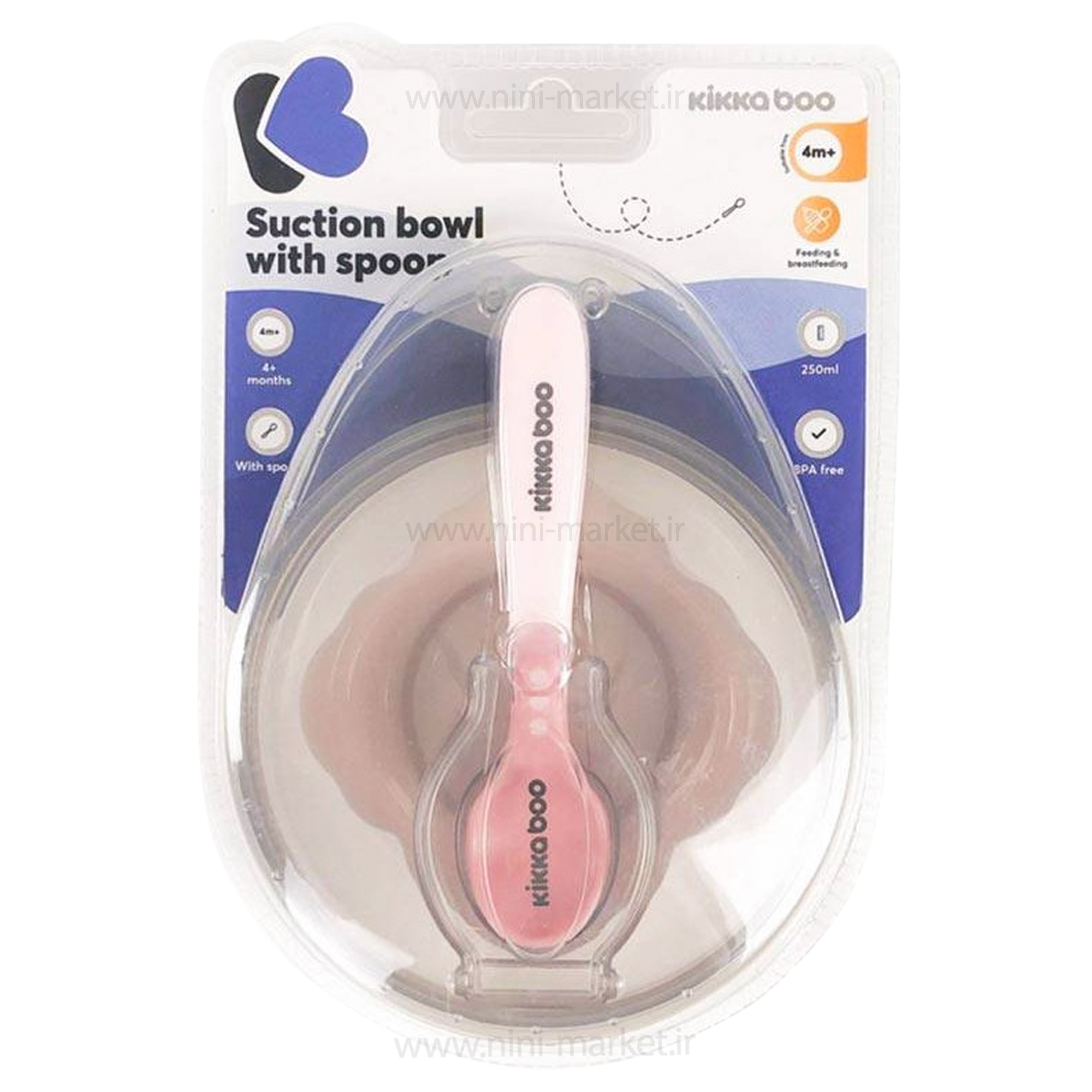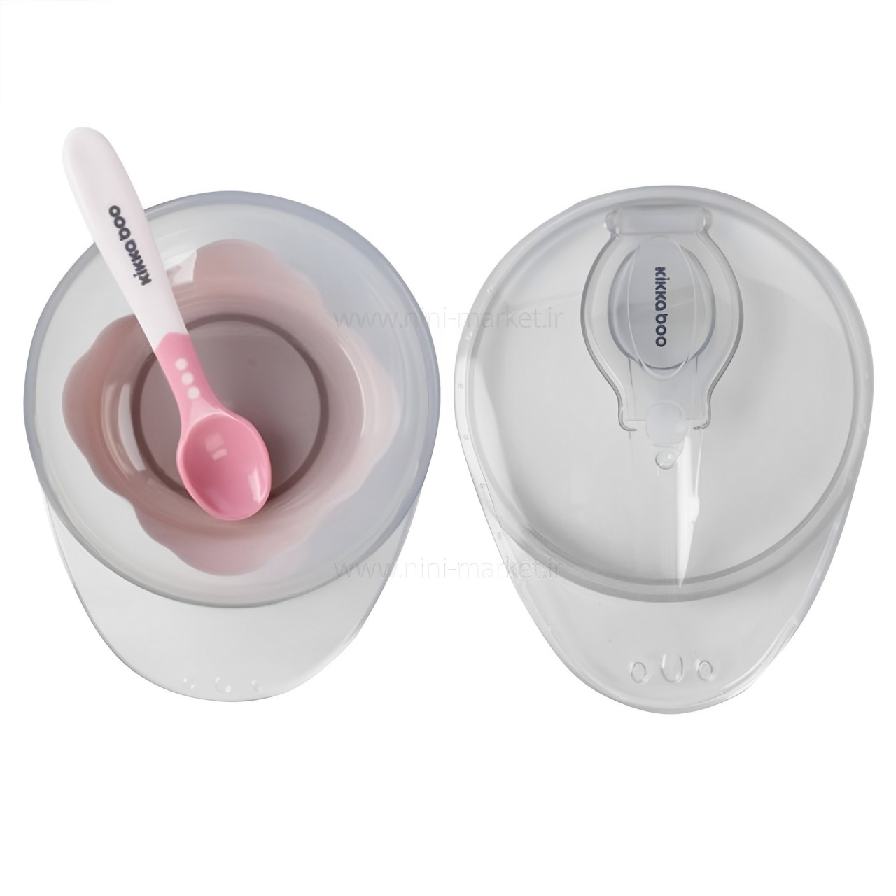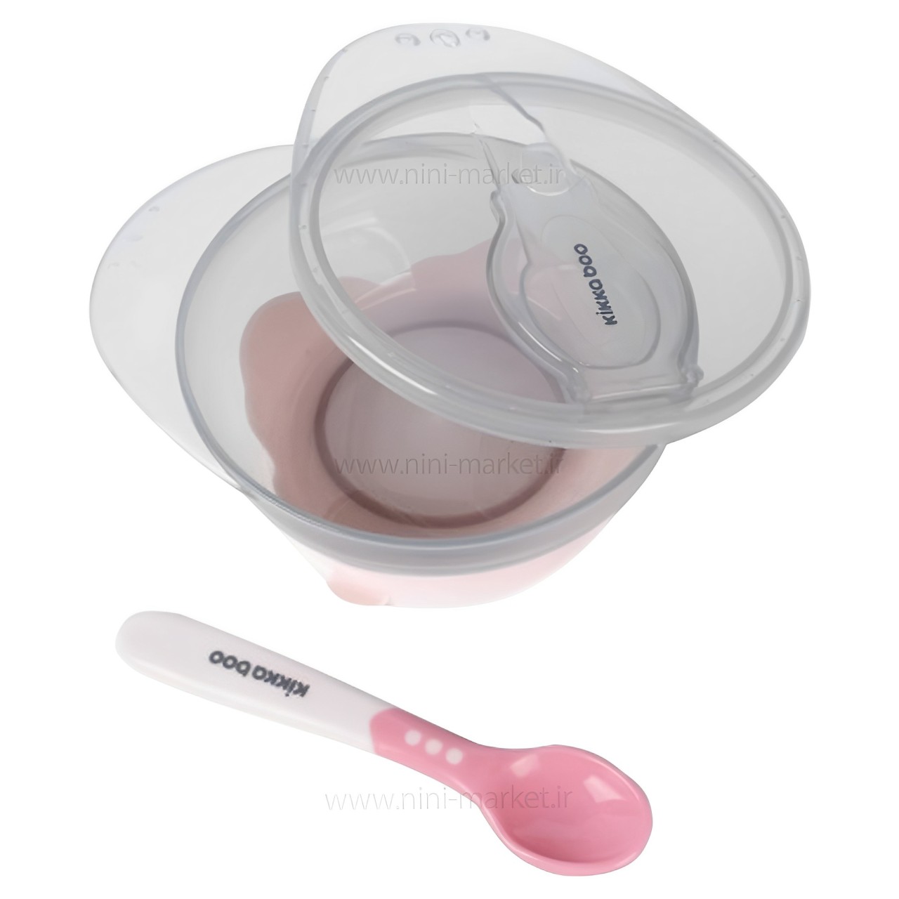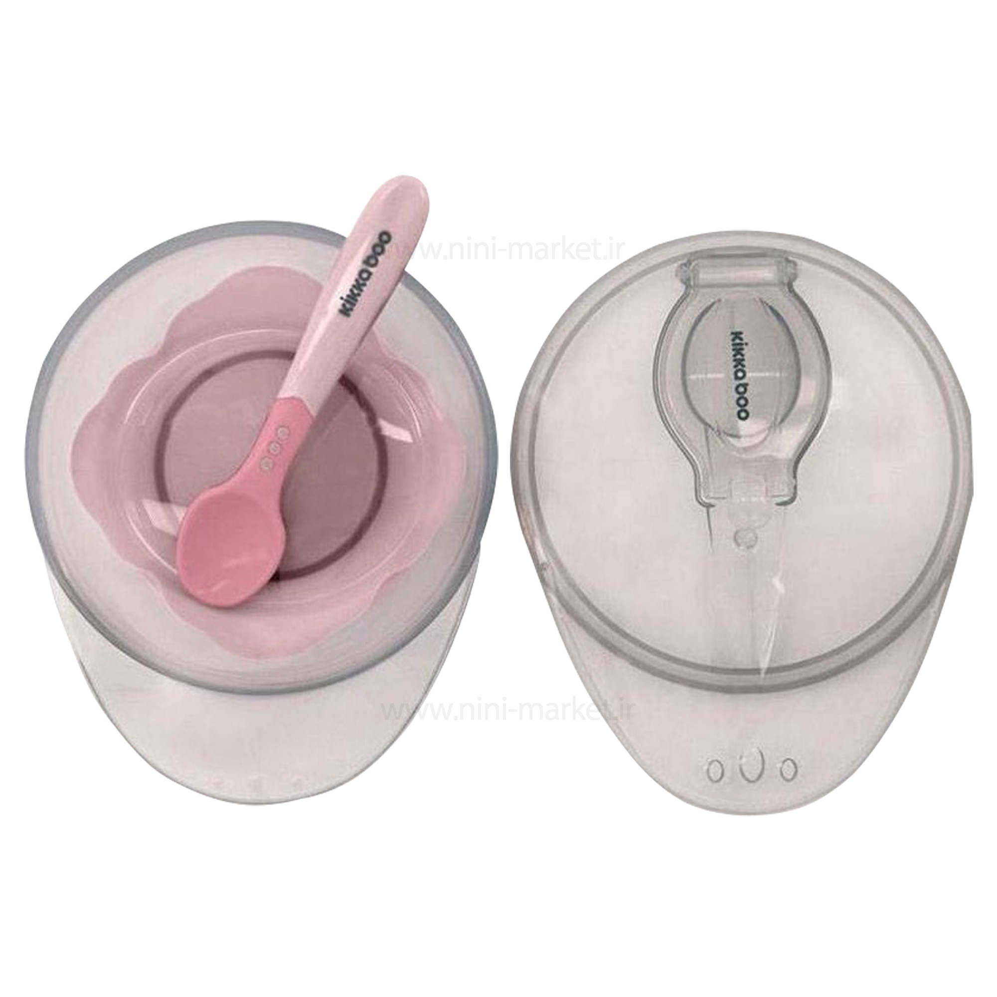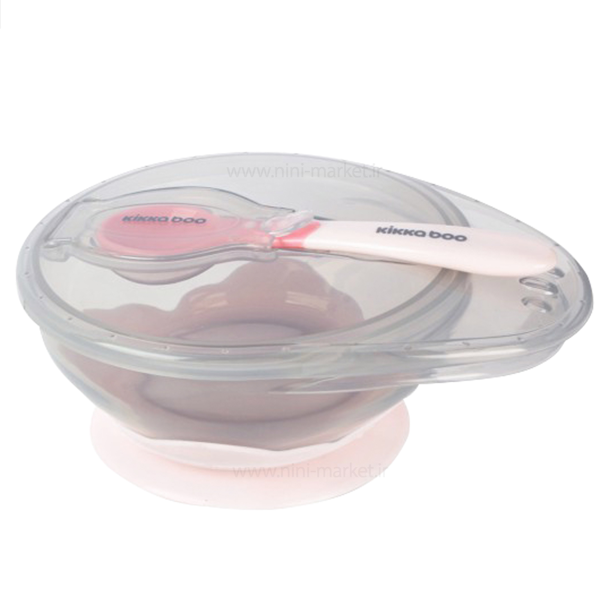 ظرف غذا با قاشق چسبان صورتی کیکابو Kikkaboo