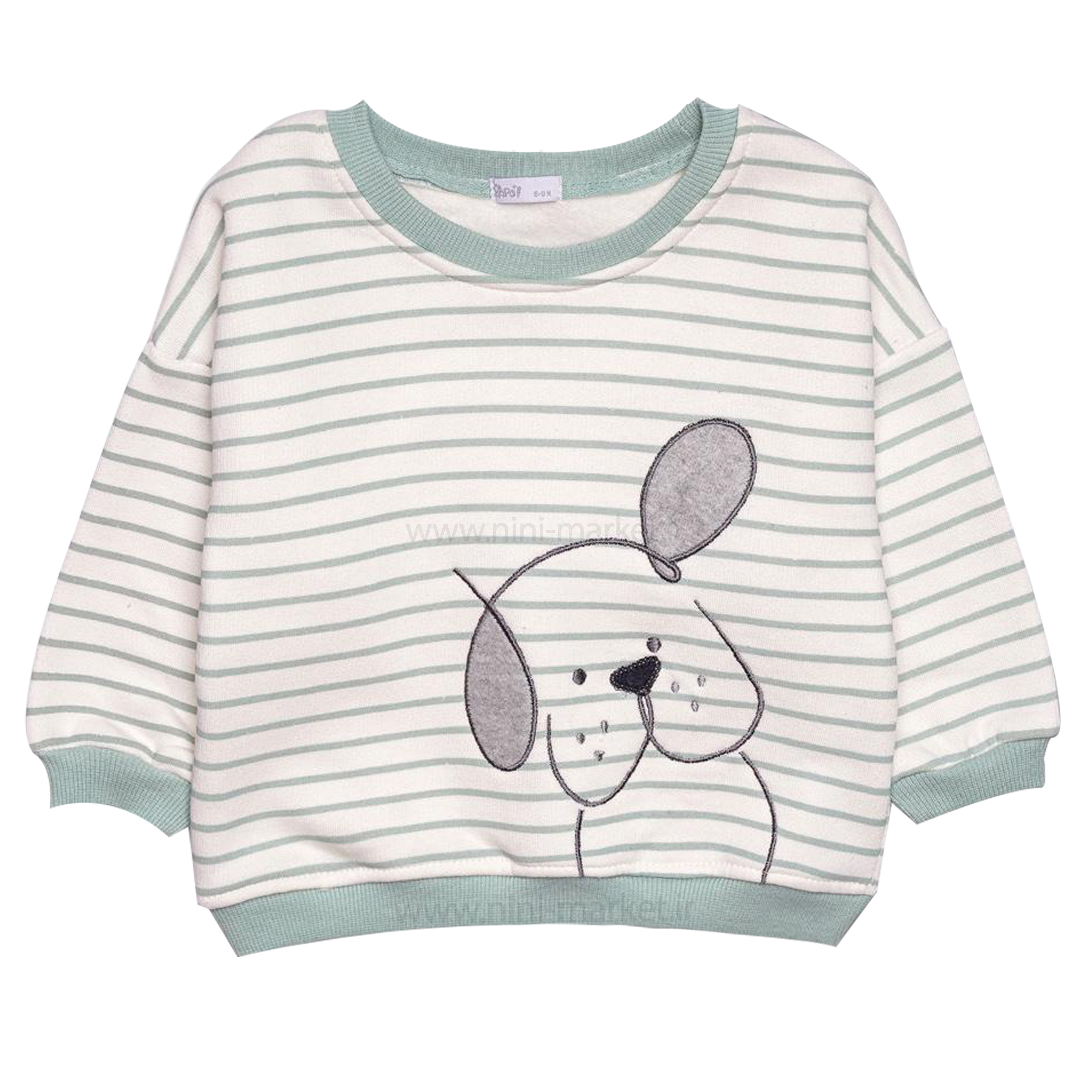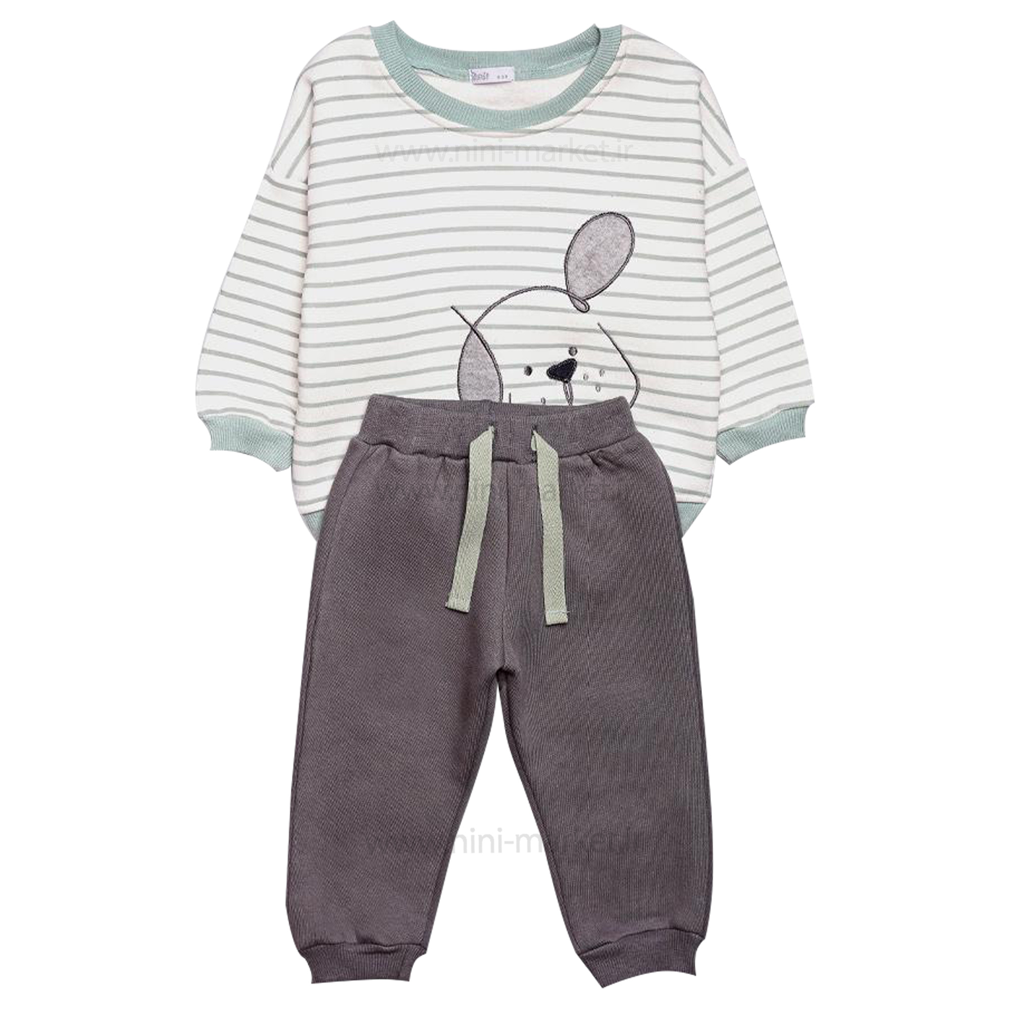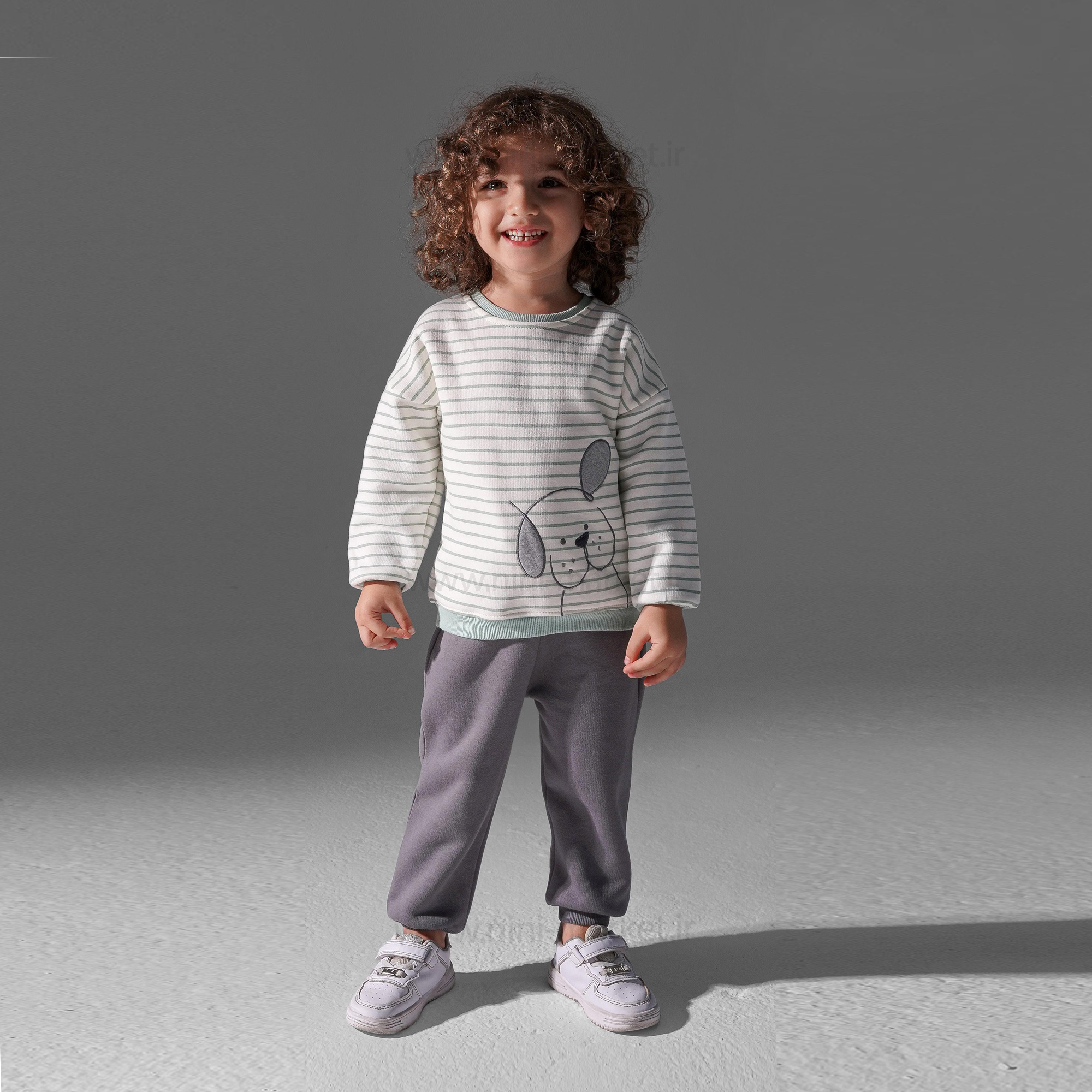 بلوز شلوار پسرانه طرح سگ راه راه رنگ سبز و طوسی پاپو Papo