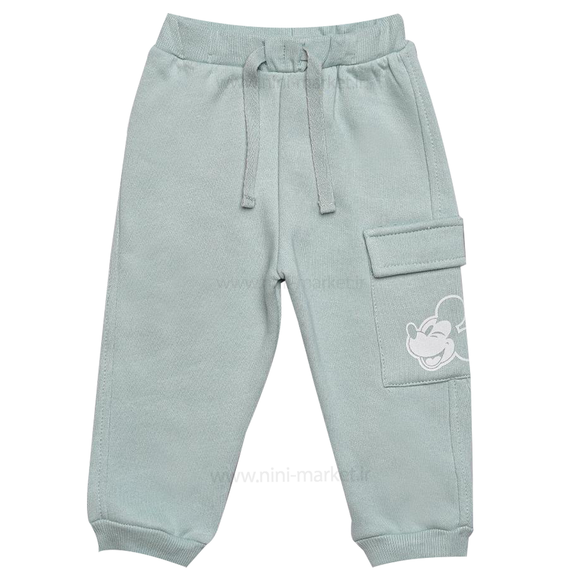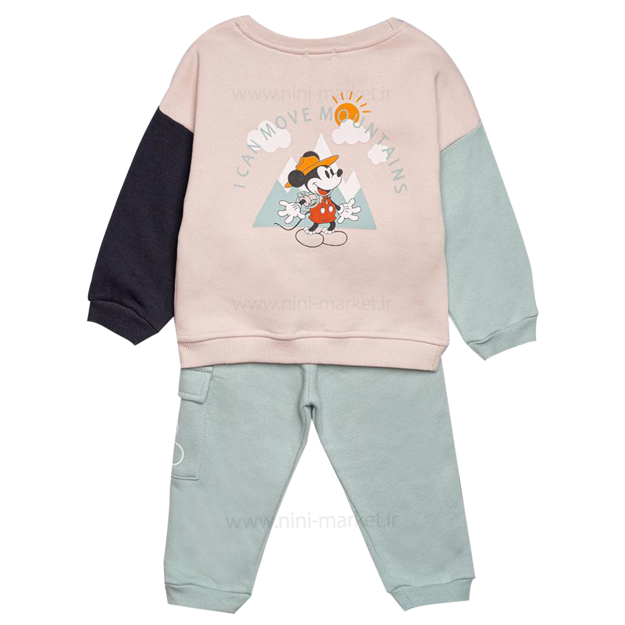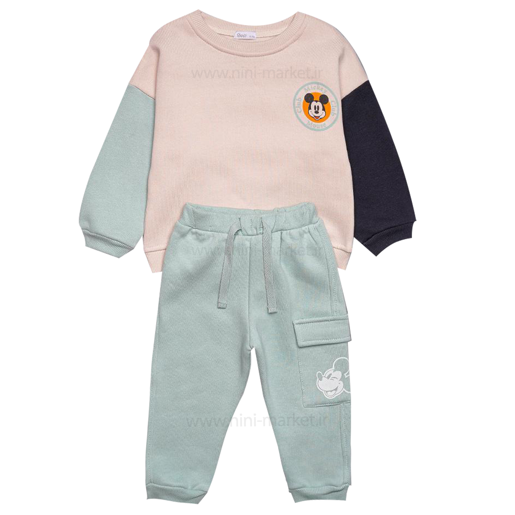بلوز شلوار پسرانه طرح میکی موس رنگ کرم سبز پاپو Papo