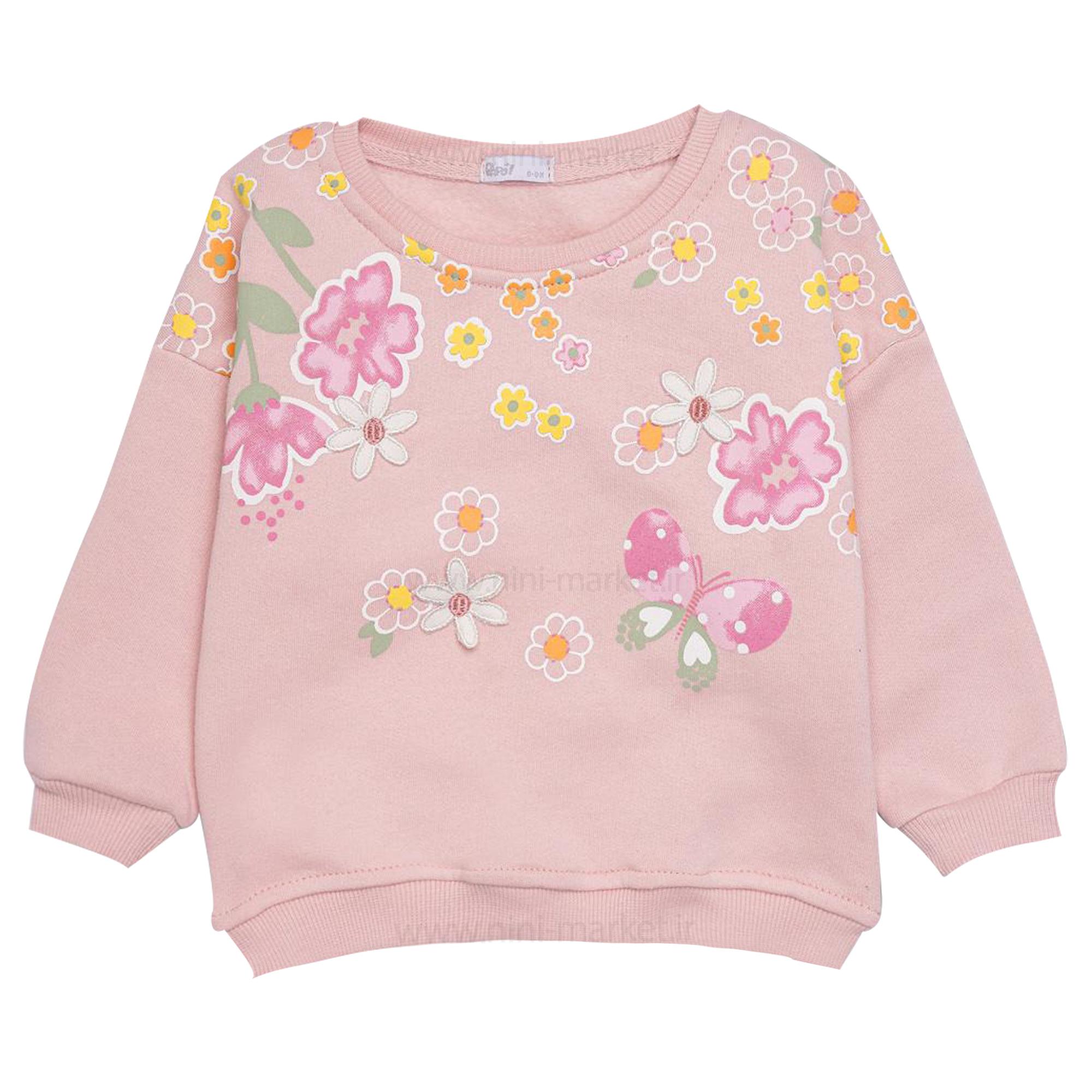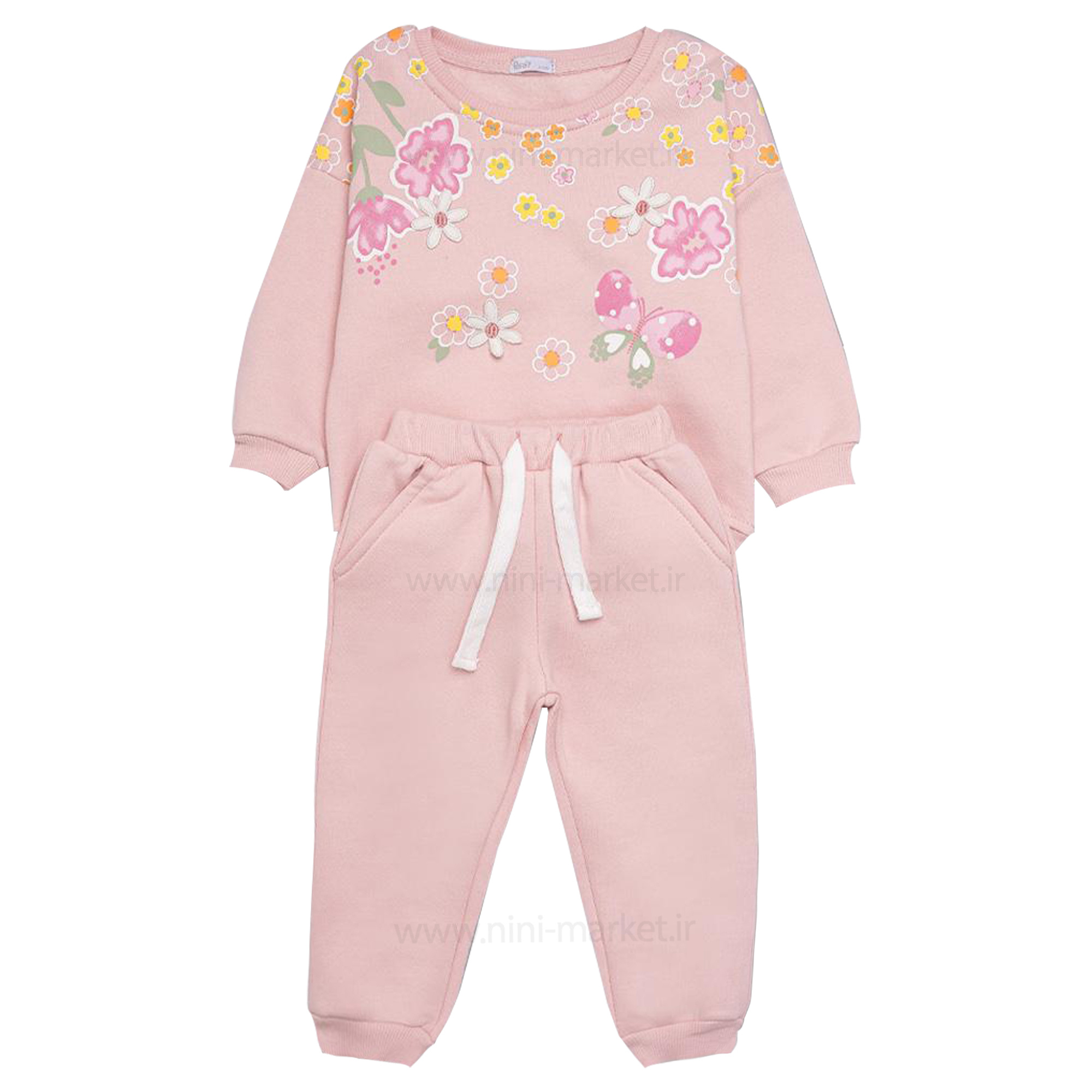 بلوز شلوار دخترانه طرح گل و پروانه رنگ صورتی پاپو Papo