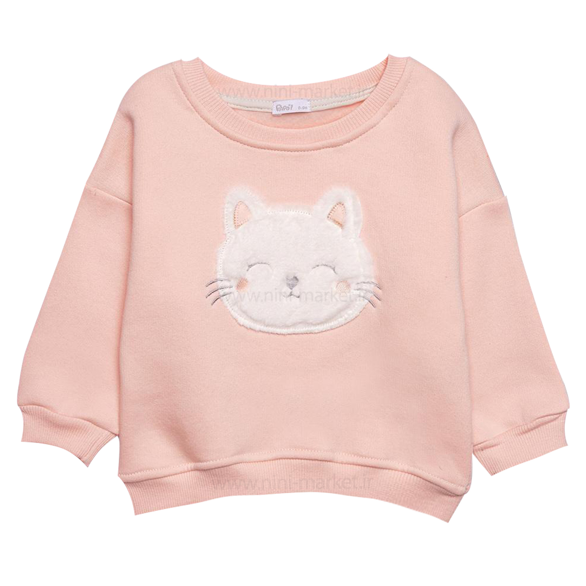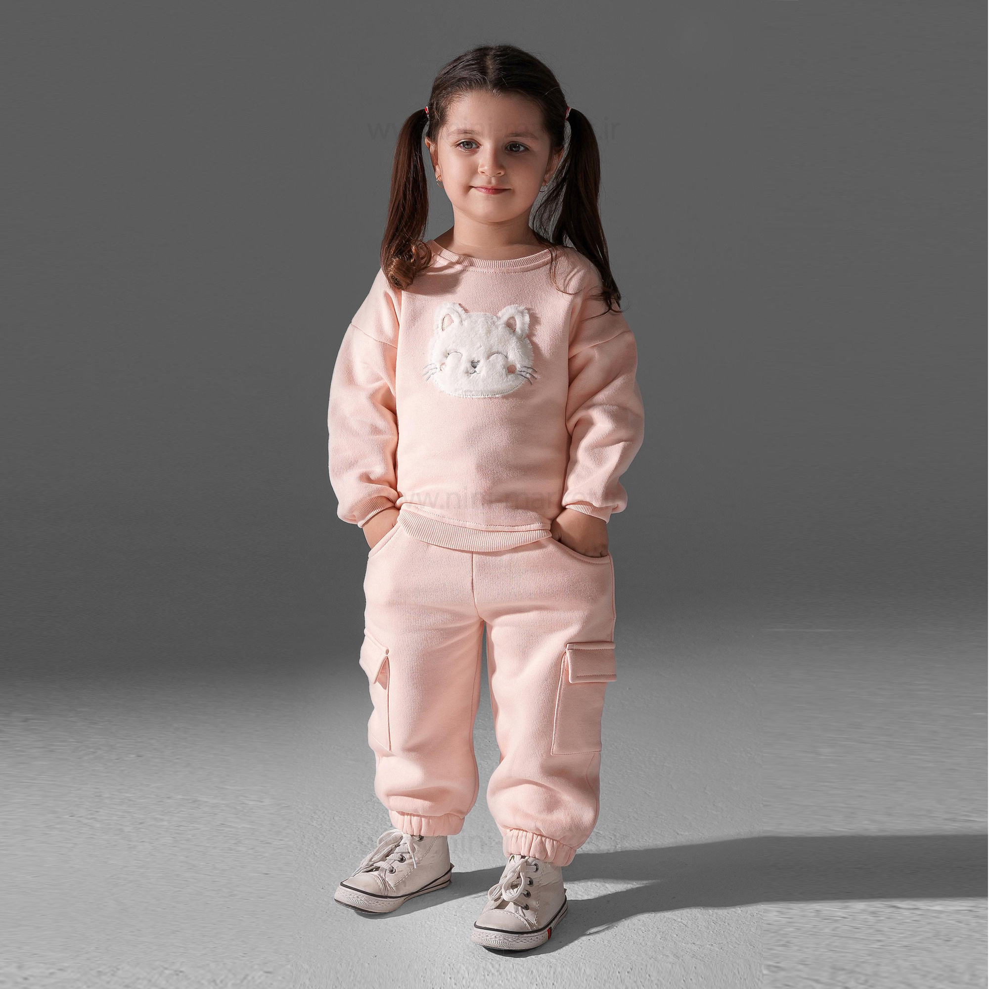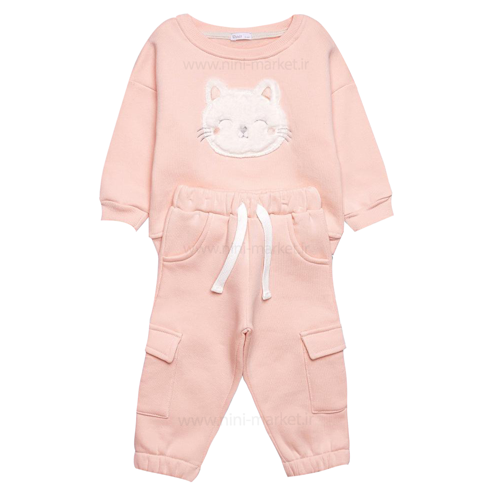 بلوز شلوار دخترانه طرح گربه رنگ صورتی پاپو Papo