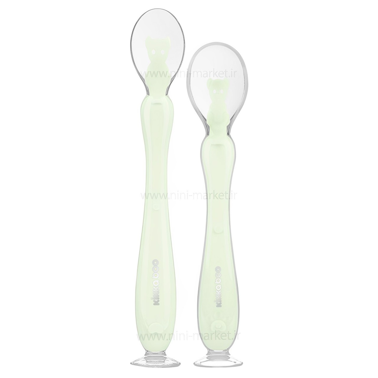قاشق سیلیکونی دو عددی چسبان رنگ سبز کیکابو kikaboo