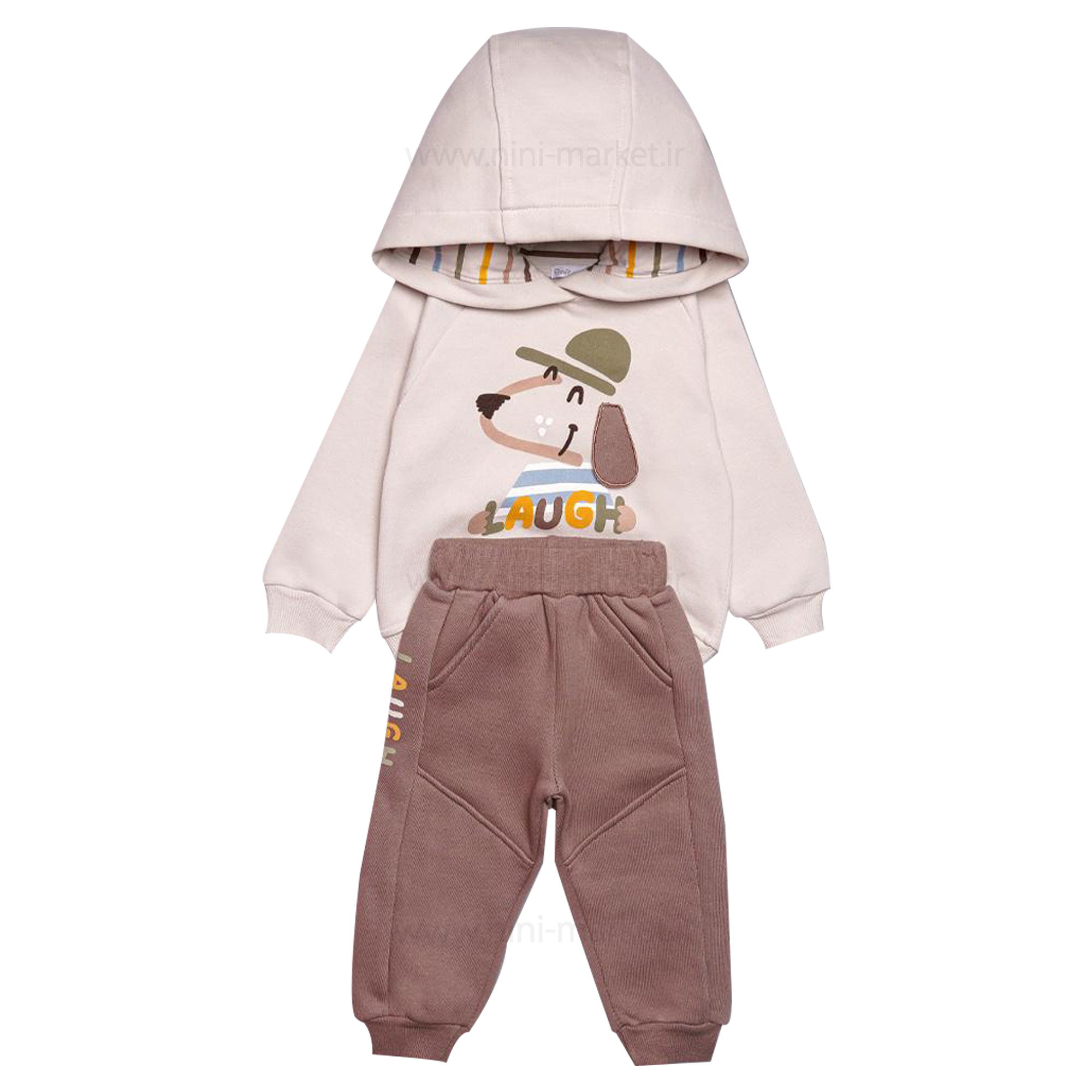 هودی شلوار پسرانه طرح سگ رنگ قهو ه ای پاپو Papo