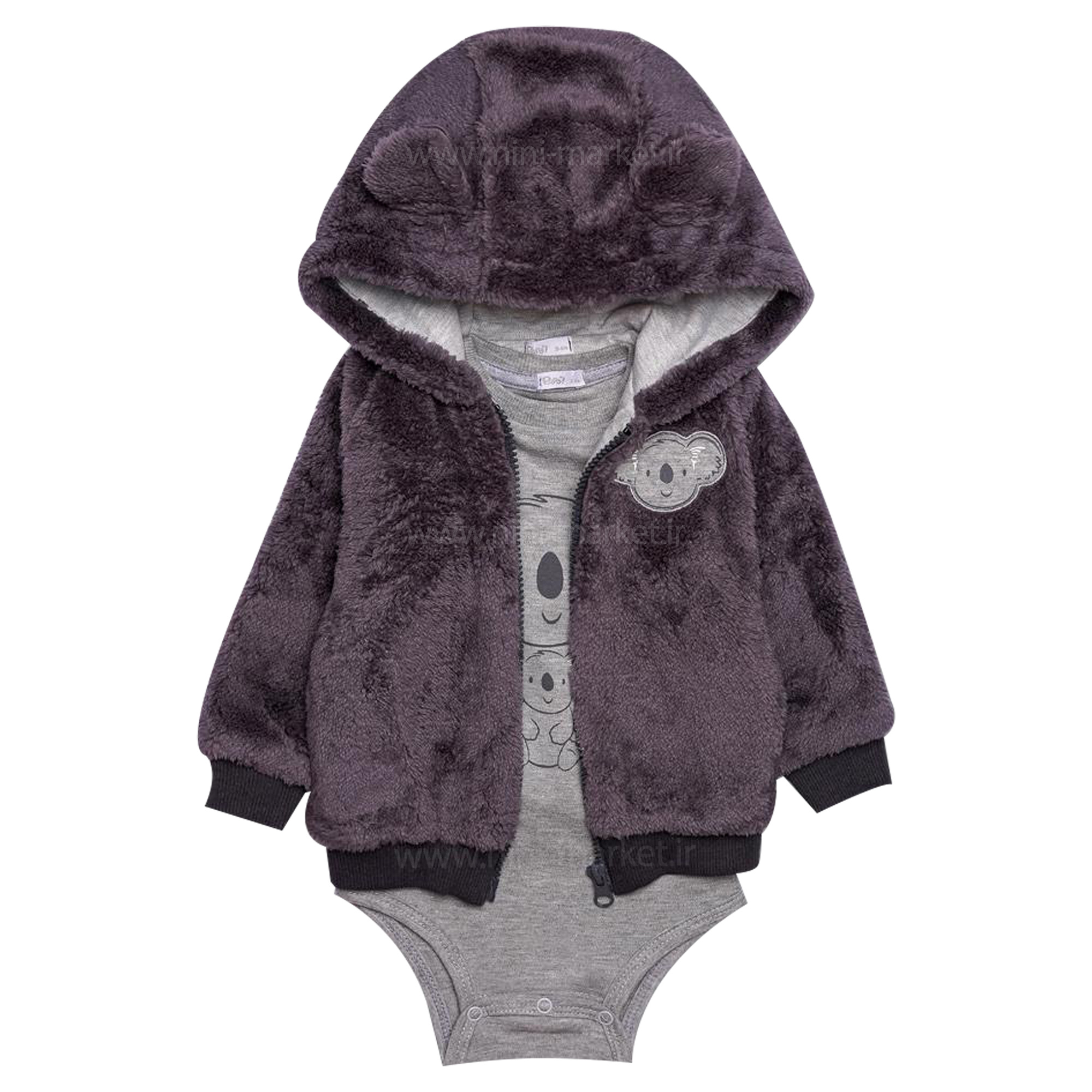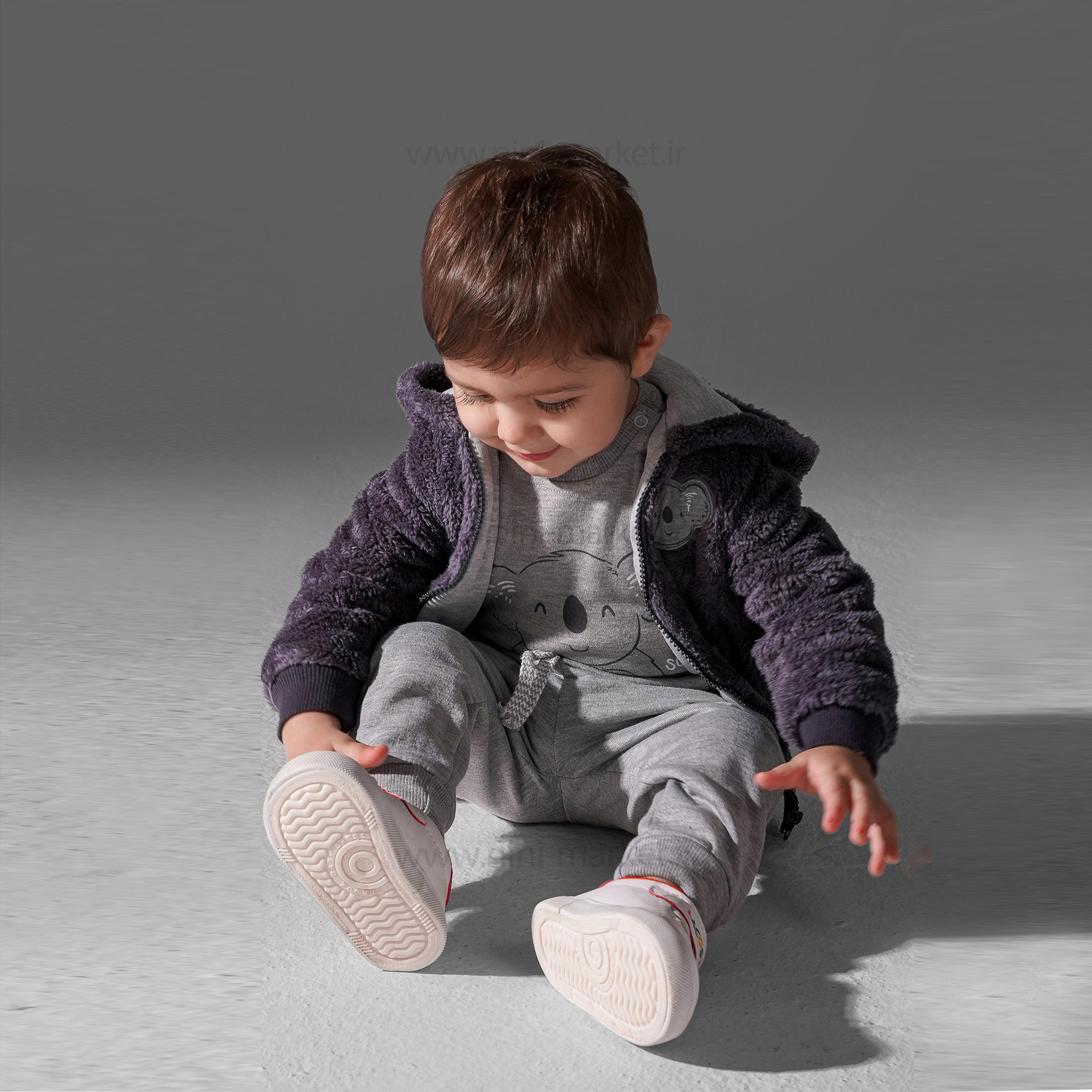 سه تیکه پسرانه اسپرت طرح کوالا رنگ طوسی پاپو Papo